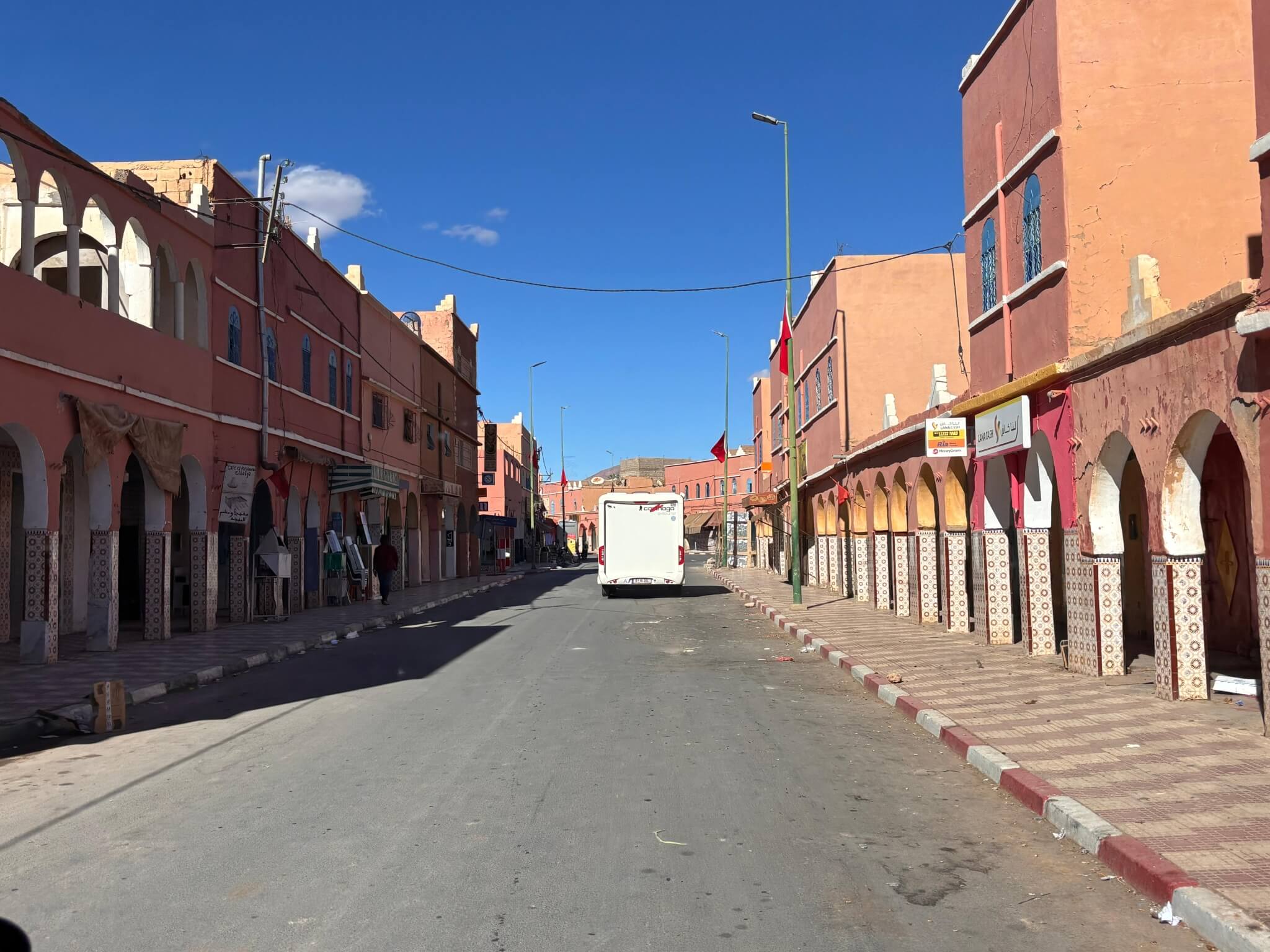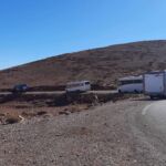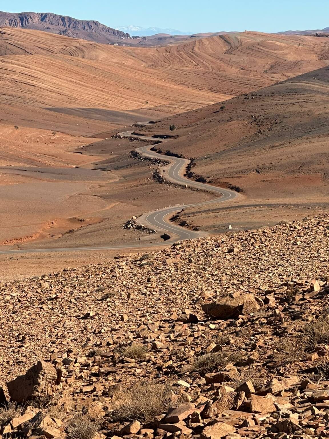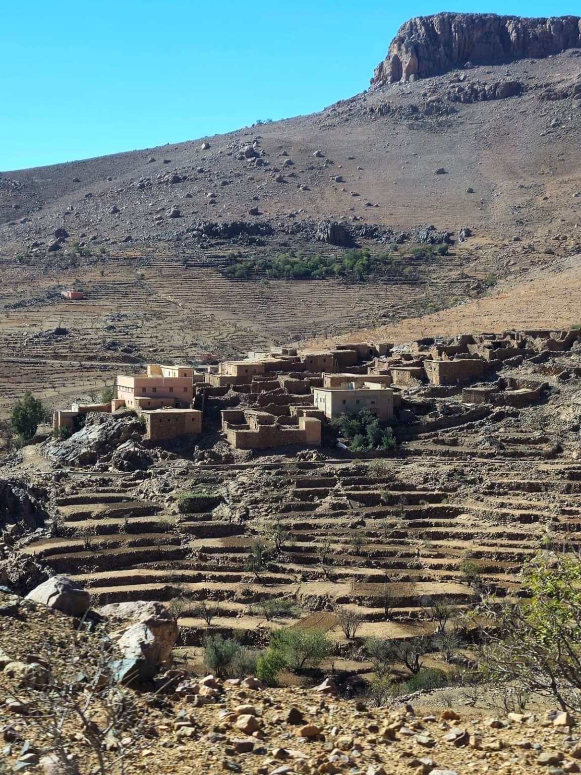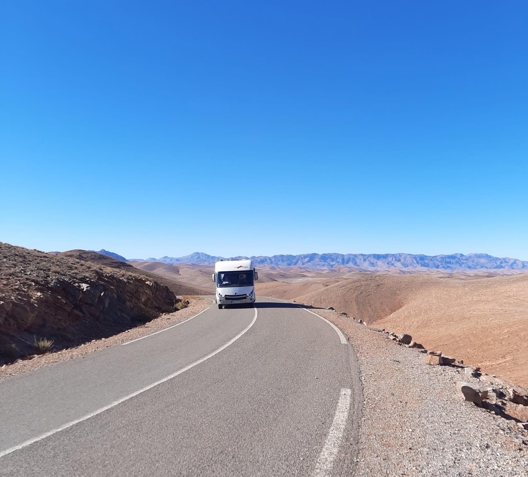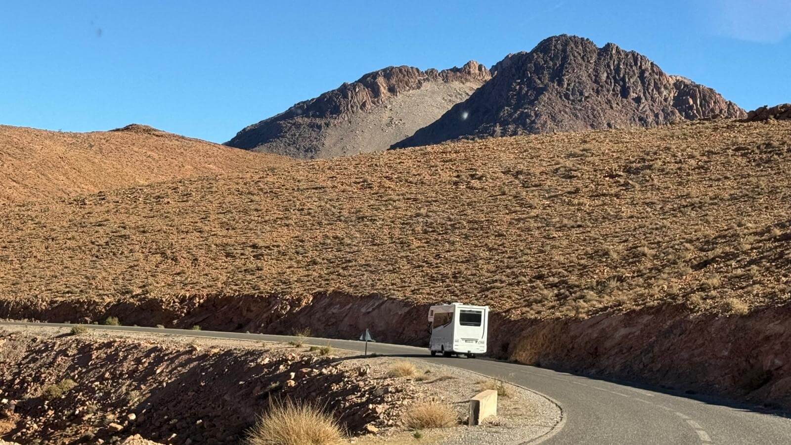 Welch ein herrlicher Tag. Nicht nur der wolkenlose, tiefblaue Himmel und der strahlende Sonnenschein begleiten uns heute während unserer Fahrt durch den Anti-Atlas den ganzen Tag. Auch die sich ständig wechselnden, atemberaubenden Landschaften, die wir durchfahren, die sich gefühlt hinter jeder Kurve ändern, sind wunderschön. Die kargen Böden, die beeindruckenden Felsformationen, die Ziegen, die auf Bäume klettern, um die grünen Blätter zu fressen, Friedhöfe und Fußballplätze im Nichts – alles ist für uns unbekannt, neu und wird bestaunt. Auch wenn wir uns fragen, wovon die Menschen hier leben, so werden wir doch in jedem Dorf, durch das wir fahren, freundlich begrüßt. Wir sind uns einig: Es war heute die bisher schönste und abwechslungsreichste Strecke. Auf unserem neuen Campingplatz angekommen, findet noch die Besprechung des nächsten Tages statt, dann suchen wir die Wohnmobile auf. Der gestrige Abend war lang und der heutige Fahrtag auch.