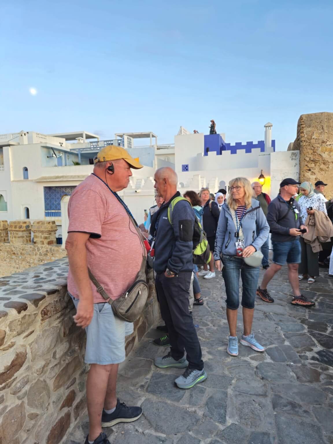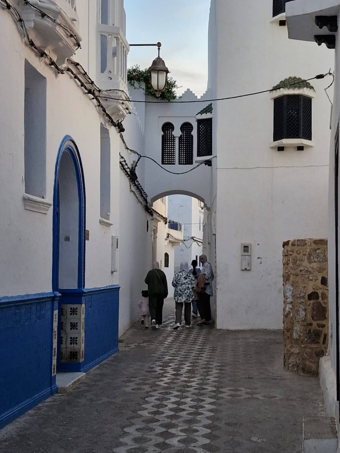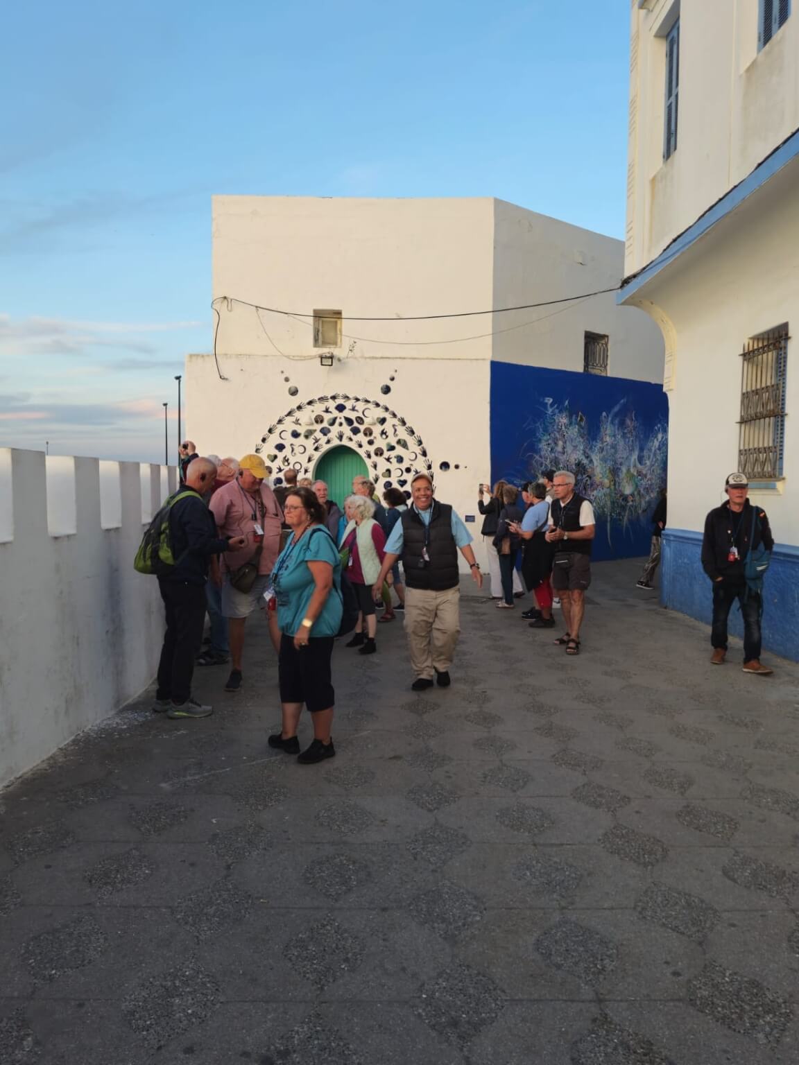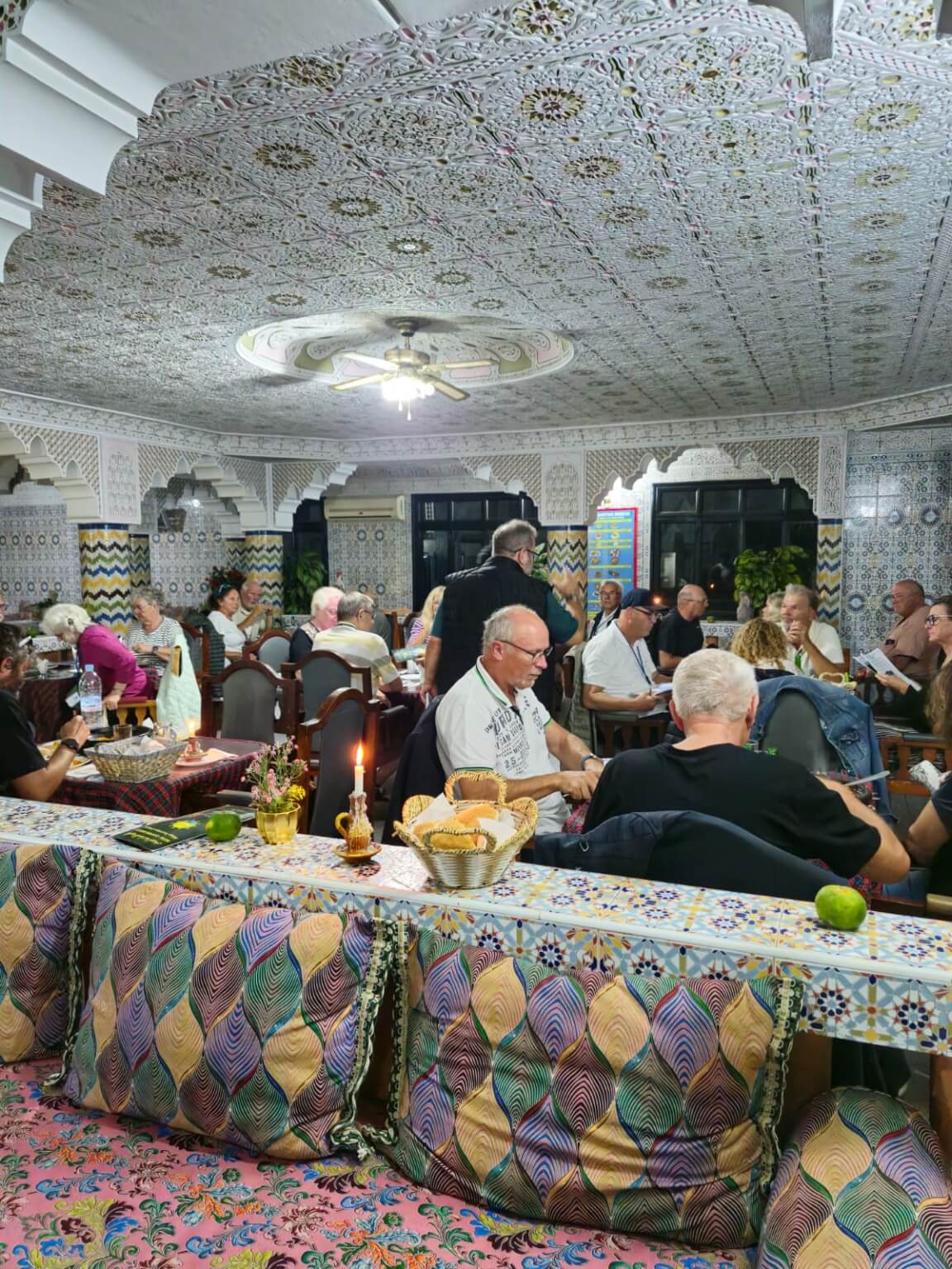 Wir treffen unseren marokkanischen Begleiter Zaid und schon kurze Zeit später machen wir uns in Taxen auf den Weg nach Asilah. Während des folgenden Stadtrundgangs durch die Medina, der Altstadt, erhalten wir die ersten Informationen über Land und Leute. Danach geht es dann zurück zum Campingplatz. Mittlerweile sind auch unsere beiden Nachzügler angekommen, und so findet dann im Restaurant des Platzes unsere erste Besprechung statt. Im Anschluss bestellen fast alle ihr erstes Abendessen auf marokkanischem Boden. Ein langer Tag, voll mit neuen Eindrücken, geht dann langsam zu Ende.