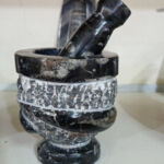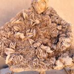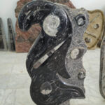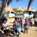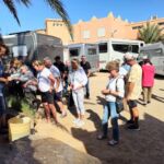 Weiter fahren wir dann nach Erfoud. Hier besuchen wir eine Steinschleiferei. Während einer kleinen Führung erfahren wir einiges über Fossilien, ihre Entstehung und über die Bearbeitung des Gesteins. Anschließend sehen wir uns in einer kleinen Ausstellung interessante Stücke an, Tische, Waschbecken, Skulpturen u. Ä., dann geht es in den angeschlossenen Shop. Von hier fahren wir dann zusammen zum Fossilien-Riff, um selbst nach ein paar schönen Steinen mit Einschlüssen zu suchen. Und alle werden fündig.