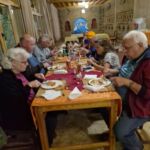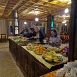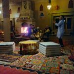 Die Sonne ist weg, die Dromedare bringen uns wieder zurück, eine kurze Verschnaufpause und Kleiderwechsel, dann geht es zum Essen in das Restaurant des Platzes. Auf dem Weg dorthin bestaunen wir noch den einmaligen Pool, dann suchen wir uns unsere Plätze und bedienen uns am Buffet. Ein langer, einmaliger und faszinierender Tag geht dann mit einem schmackhaften Essen zu Ende.