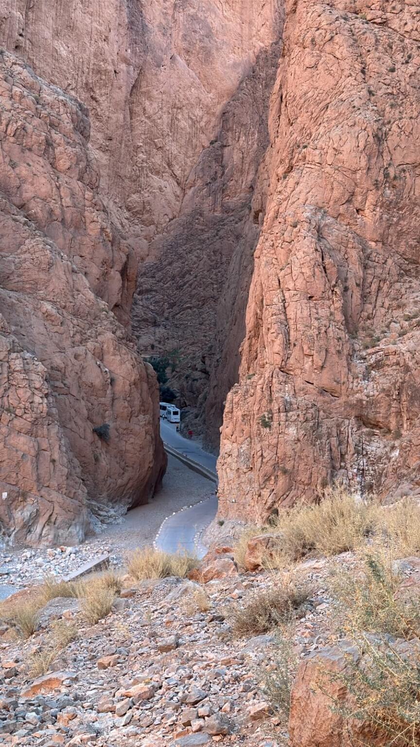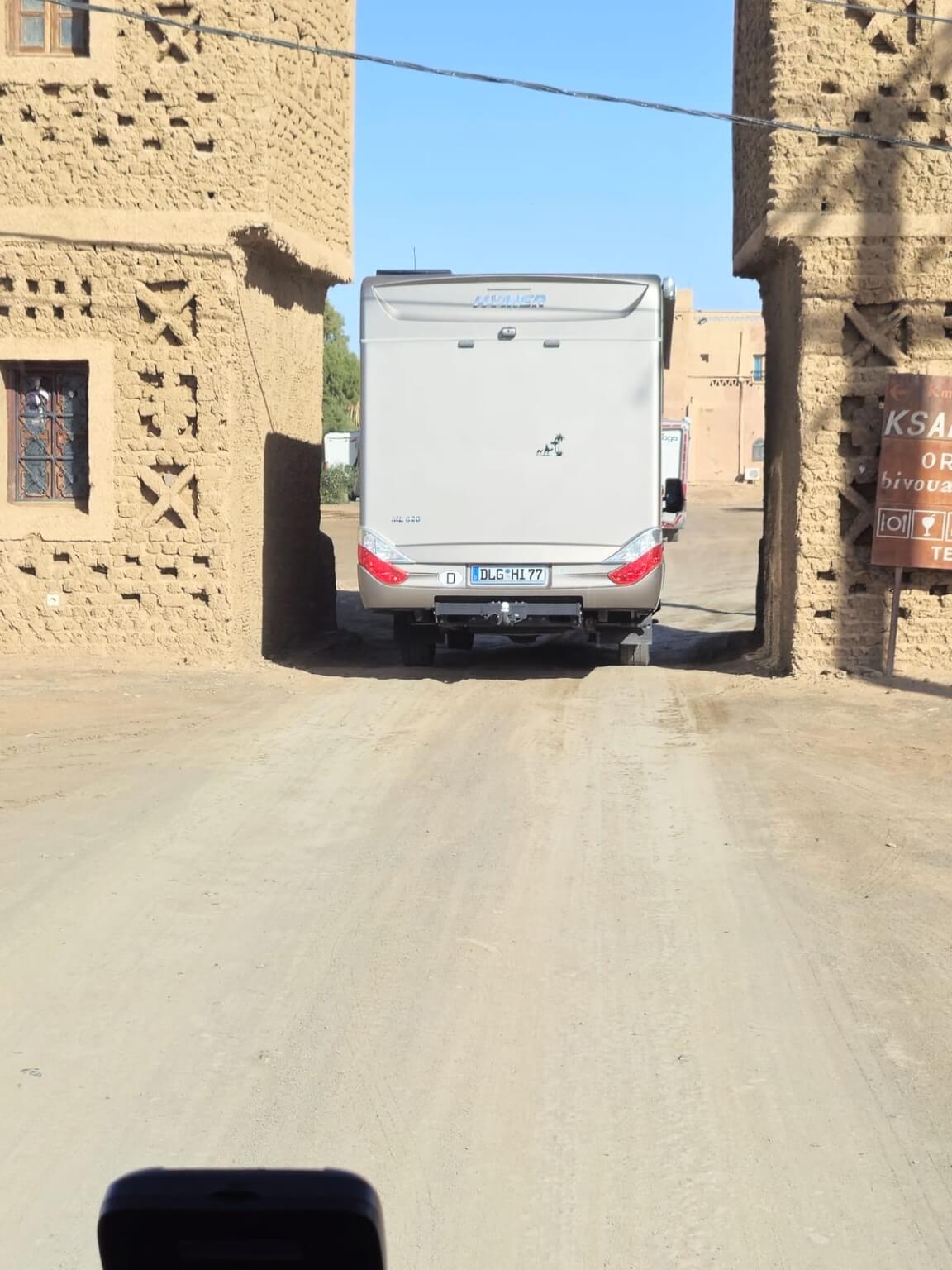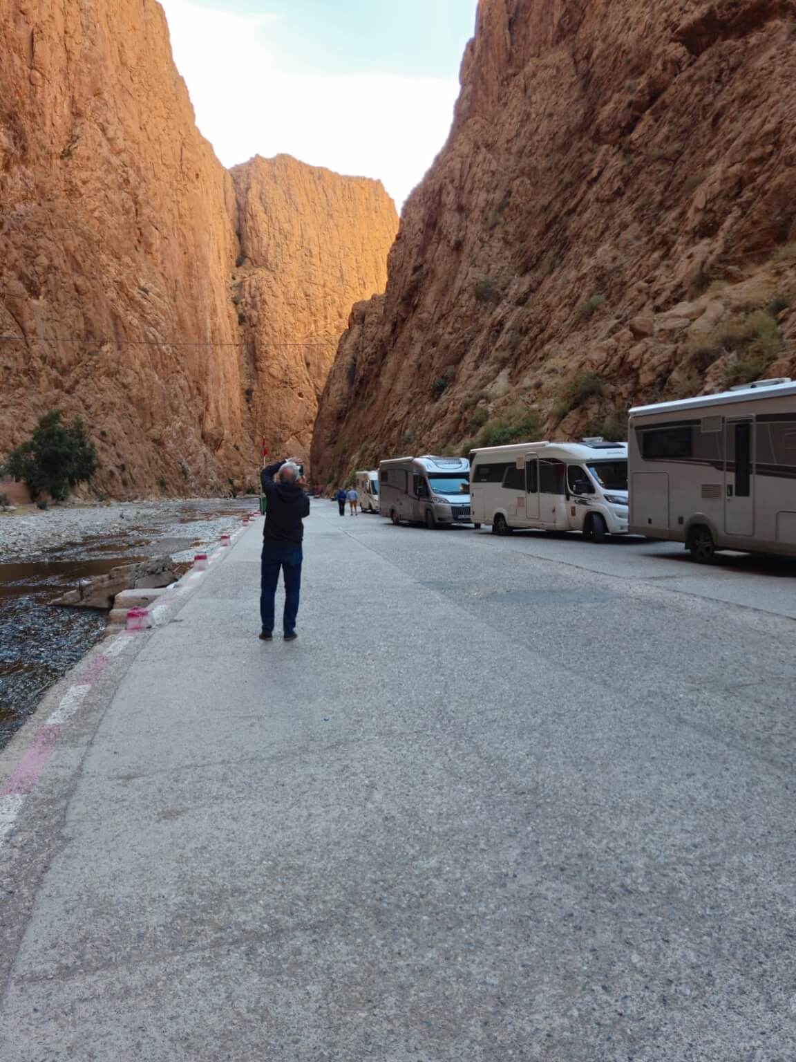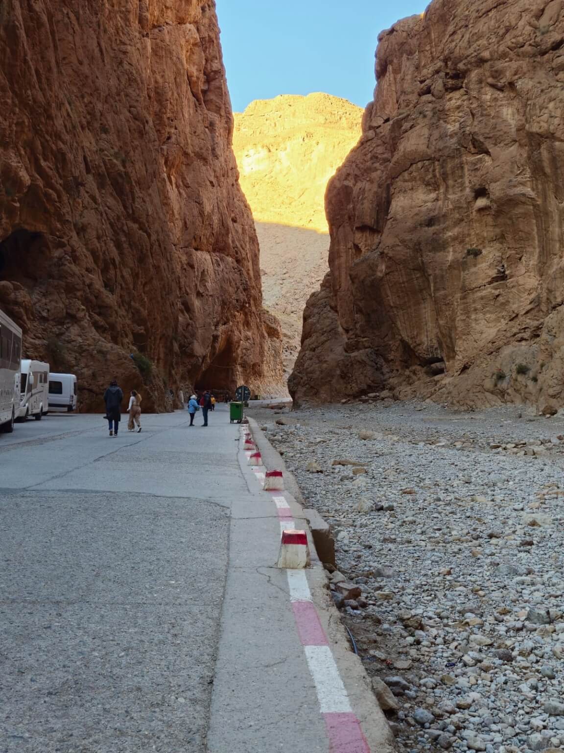Wir verlassen bei wieder schönstem Wetter unseren Campingplatz und besuchen die Todra-Schlucht. Gerade einmal 8 km müssen wir fahren, vorbei an und durch kleine Lehmdörfer, die sich an die Felskanten schmiegen, bis wir die Schlucht erreichen. An der schmalsten Stelle gerade einmal 10 m breit und die Felsen ragen bis zu 300 m hinauf. Ein atemberaubender Anblick.