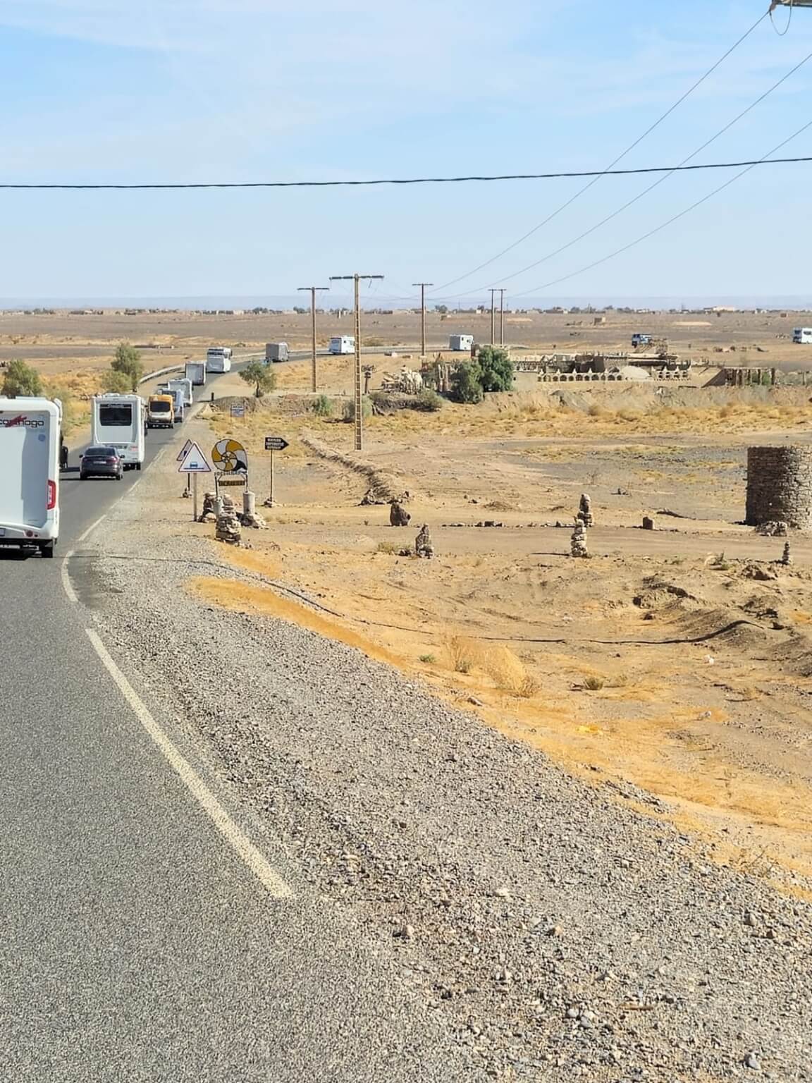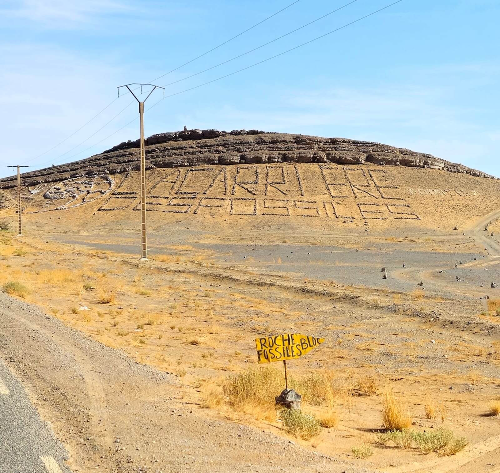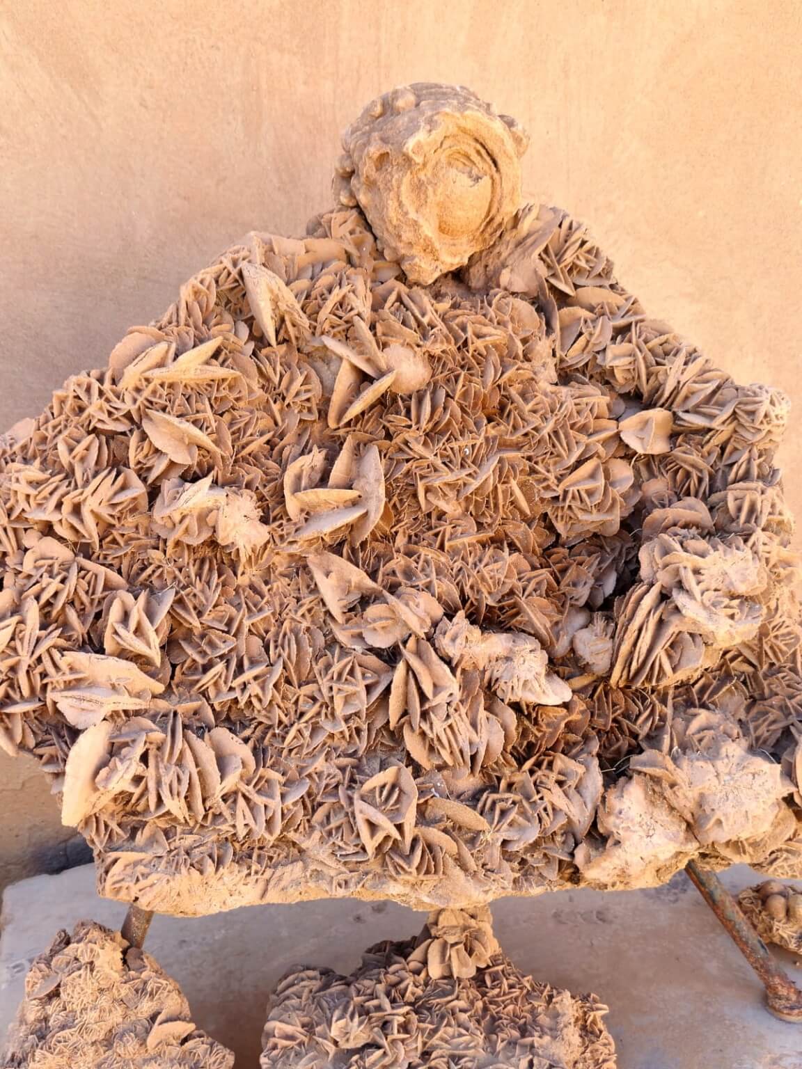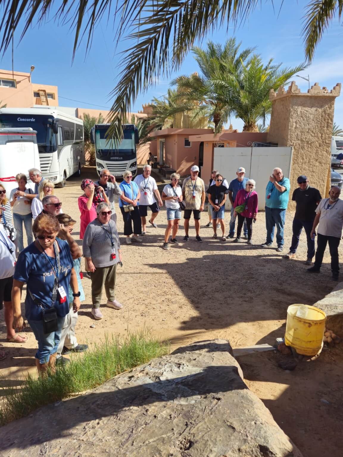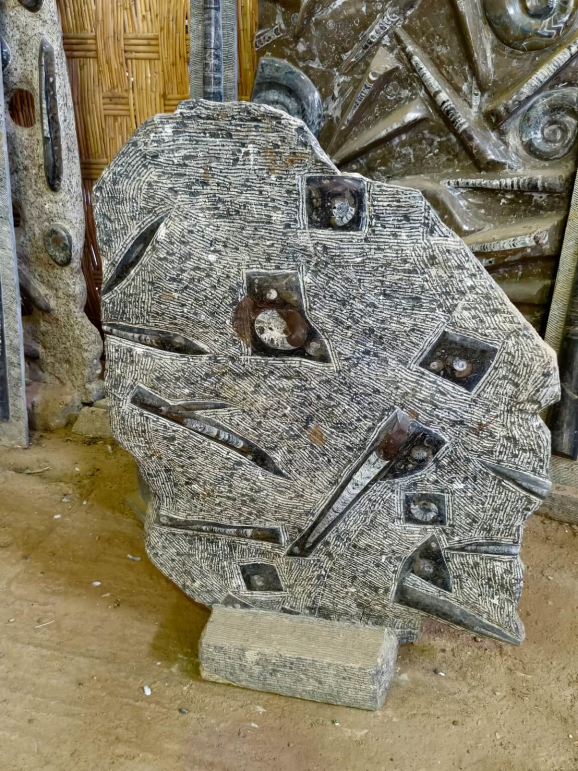 Weiter fahren wir dann nach Erfoud. Hier besuchen wir eine Steinschleiferei. Während einer kleinen Führung erfahren wir einiges über Fossilien, ihre Entstehung und über die Bearbeitung des Gesteins. Anschließend sehen wir uns in einer kleinen Ausstellung interessante Stücke an, Tische, Waschbecken, Skulpturen u. Ä., dann geht es in den angeschlossenen Shop. Von hier fahren wir dann zusammen zum Fossilien-Riff, um selbst nach ein paar schönen Steinen mit Einschlüssen zu suchen. Und alle werden fündig.