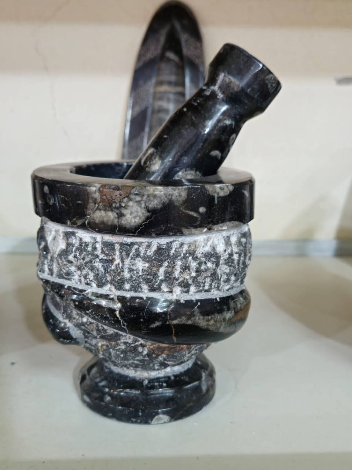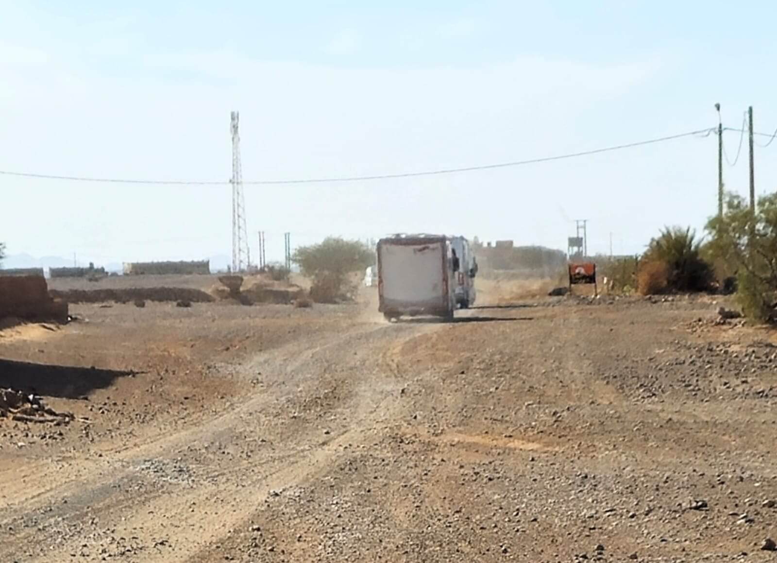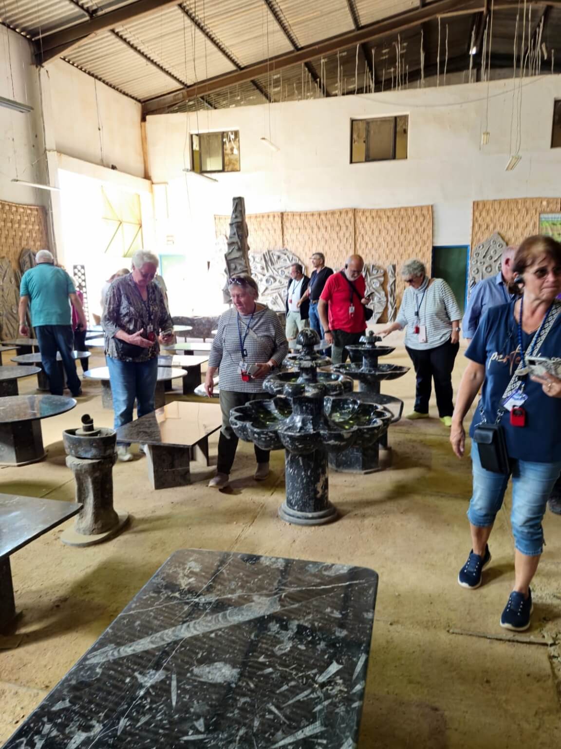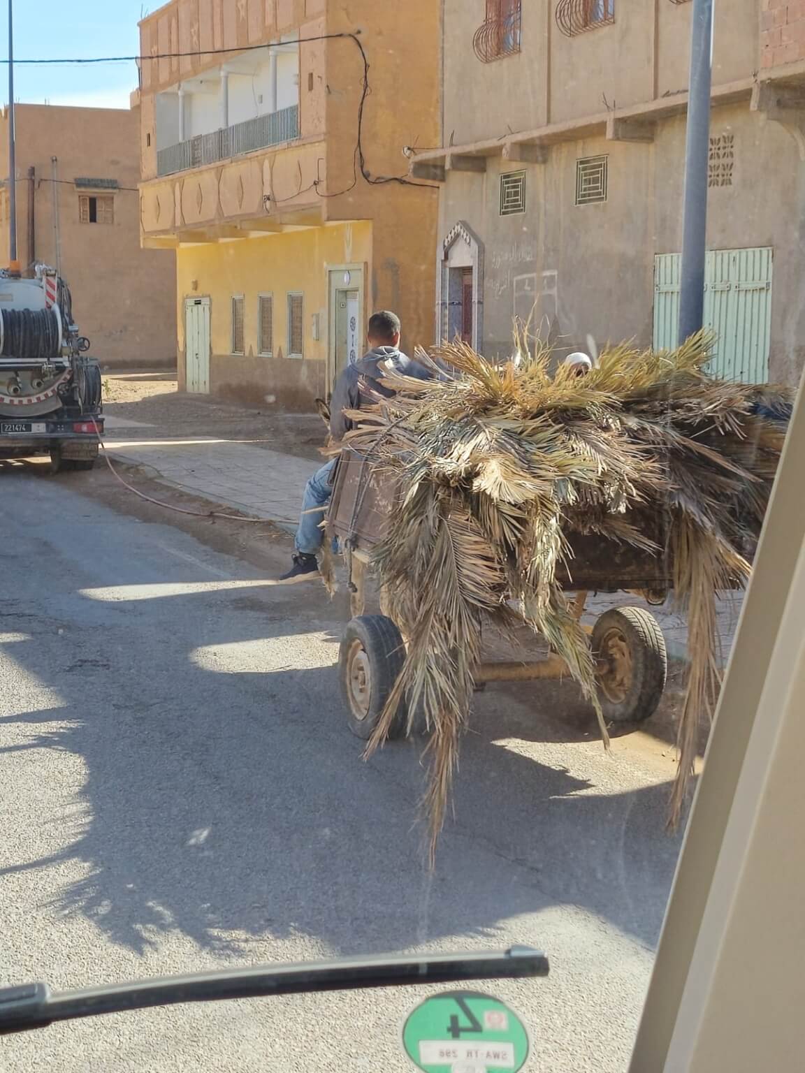 Weiter fahren wir dann nach Erfoud. Hier besuchen wir eine Steinschleiferei. Während einer kleinen Führung erfahren wir einiges über Fossilien, ihre Entstehung und über die Bearbeitung des Gesteins. Anschließend sehen wir uns in einer kleinen Ausstellung interessante Stücke an, Tische, Waschbecken, Skulpturen u. Ä., dann geht es in den angeschlossenen Shop. Von hier fahren wir dann zusammen zum Fossilien-Riff, um selbst nach ein paar schönen Steinen mit Einschlüssen zu suchen. Und alle werden fündig.