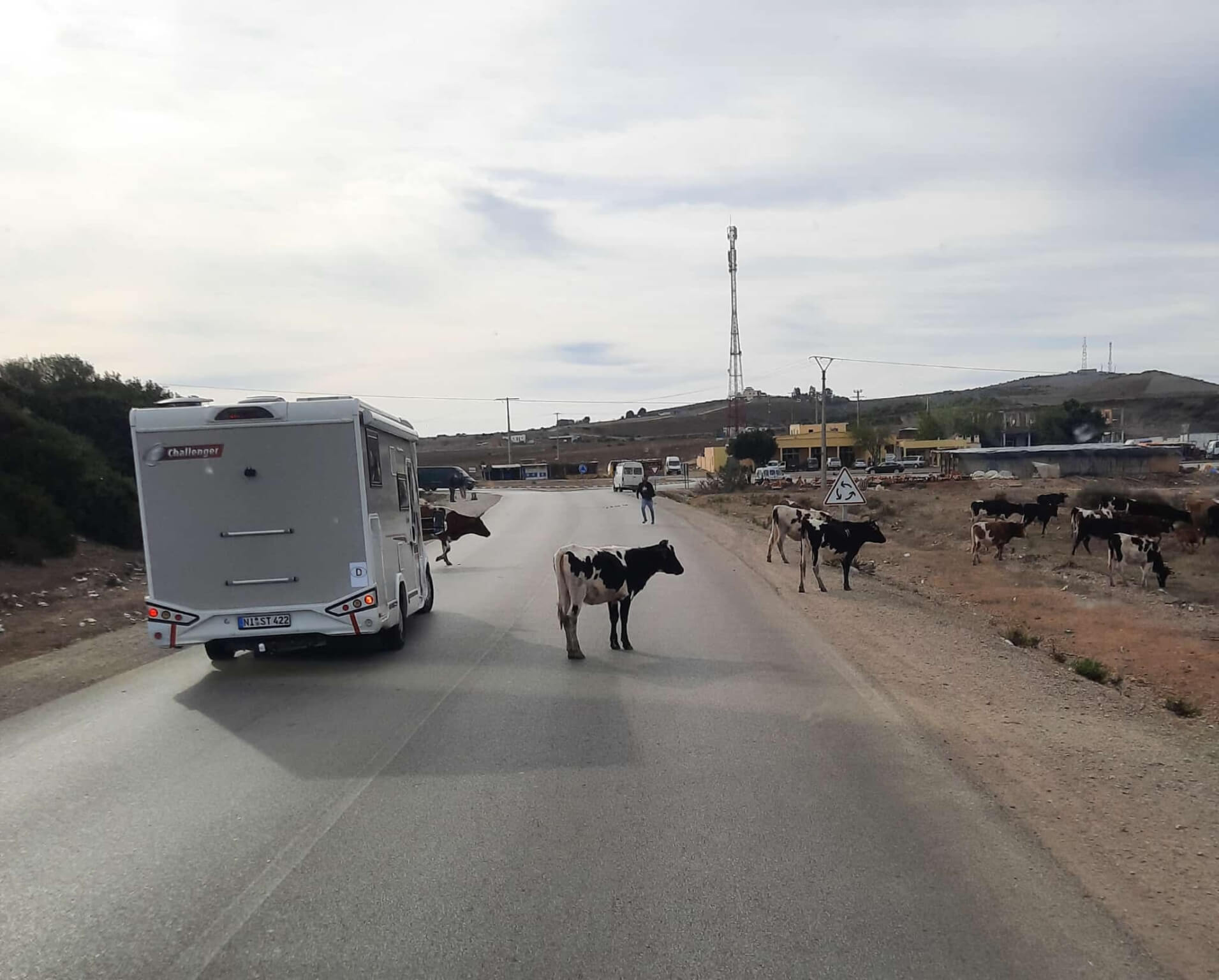 Heute haben wir unseren ersten Fahrtag in Marokko. Die „Marokkanisierung“ der Handys schreitet voran und vor uns liegen rund 300 km entlang der Küste Richtung Süden. Das Wetter ist so, wie man es erwartet in Marokko: warm und gut. Die Welt ist hier doch etwas anders. Wir sehen die ersten Eselskarren, Fußgänger auf der Autobahn, Bodenschwellen zur Verkehrsberuhigung überall, die vielen Kontrollpunkte der Polizei, Händler am Straßenrand, die großen Agrarflächen – alles ist unbekannt, alles ist für uns neu, aber schön und es scheint etwas chaotisch.