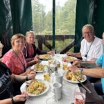 Wir fahren mit Witek, unserem heutigen Busfahrer, nach Swieta Lipka, einem bedeutenden Marienwallfahrtsort. Gegen 9:30 Uhr sind wir an der Barockkirche „Heiligelinde“. Sie ist prachtvoll ausgestattet, aber ein besonderes Highlight ist ihre prunkvolle Orgel mit 2.640 Pfeifen, 41 Registern und beweglichen Figuren. Dort lauschen wir einem eindrucksvollen Orgelkonzert. Im Anschluss fahren wir durch die Johannesburger Heide, mit 1.000 Quadratkilometern das größte Waldgebiet Polens, zum Flüsschen Krutynia. Dort besteigen wir kleine Boote und genießen eine Stakenfahrt inmitten der Natur. Danach bekommen wir im Restaurant „Krutynia“ ein sehr schmackhaftes Mittagessen serviert. Weiter geht unsere Fahrt zum Kloster der Altgläubigen nach Eckersdorf. Schon während der Fahrt erfahren wir von Marjellchen viel über das Leben und den Glauben der Altgläubigen. Nach einer kurzen Führung durch das kleine Museum setzen wir unsere Fahrt fort und erreichen bald Mikolajki, das touristische Zentrum der Region. Nach einer kleinen Freizeit geht es zurück zum Campingplatz. Dort hat Magda, die Verwalterin des Platzes, auf Bitten der Reiseleitung Fleisch und Wurst vom Grill und Salat vorbereitet. So können wir nochmals gemeinsam essen, trinken und einen schönen Abend verbringen.