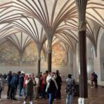 Wieder eine relativ frische Nacht auf unserer Reise. Dafür werden wir mit strahlendem Sonnenschein entschädigt. Unsere heutige Reiseführerin Frau Wieslawa begrüßte uns pünktlich um 10:00 Uhr im Eingangsbereich der Marienburg und begann gleich mit den Erläuterungen zur Geschichte der Burg. Die Marienburg, gelegen am Fluss Nogat in der heutigen Stadt Malbork, ist die größte mittelalterliche Backsteinburg der Welt und eines der bedeutendsten Denkmäler der Ordenszeit. Sie wurde ab 1274 vom Deutschen Orden als strategische Festung und späterer Hauptsitz errichtet, nachdem der Orden seine Machtbasis vom Heiligen Land in den Ostseeraum verlegt hatte. Wie wir zwischendurch im Internet nachgeforscht haben, sind rund 50 Millionen Backsteine verbaut worden. Ursprünglich diente die Burg als Sitz des Komturs von Marienburg, doch schon 1309 verlegte der Hochmeister Siegfried von Feuchtwangen die gesamte Ordenszentrale von Venedig hierher. Damit wurde die Marienburg zum politischen, administrativen und religiösen Zentrum des Ordensstaates, dessen Herrschaftsgebiet große Teile des heutigen Polen, Litauens und des Baltikums umfasste. Die Bauweise der Burg ist einzigartig: Sie wurde in drei Komplexe gegliedert – Hochschloss, Mittelschloss und Vorschloss – und diente nicht nur als Residenz, sondern auch als Kloster, Verwaltungszentrum und militärische Bastion. Das Hochschloss war zugleich eine Ordensburg und eine Art Klosteranlage, mit der Marienkirche im Zentrum. Im Mittelschloss befanden sich Repräsentationsräume, die mit zu den größten gotischen Profansälen Europas gehören. Die monumentale Architektur, die reiche Ausstattung und die militärische Stärke machten die Marienburg zu einem sichtbaren Symbol der Macht und des Selbstbewusstseins des Deutschen Ordens.