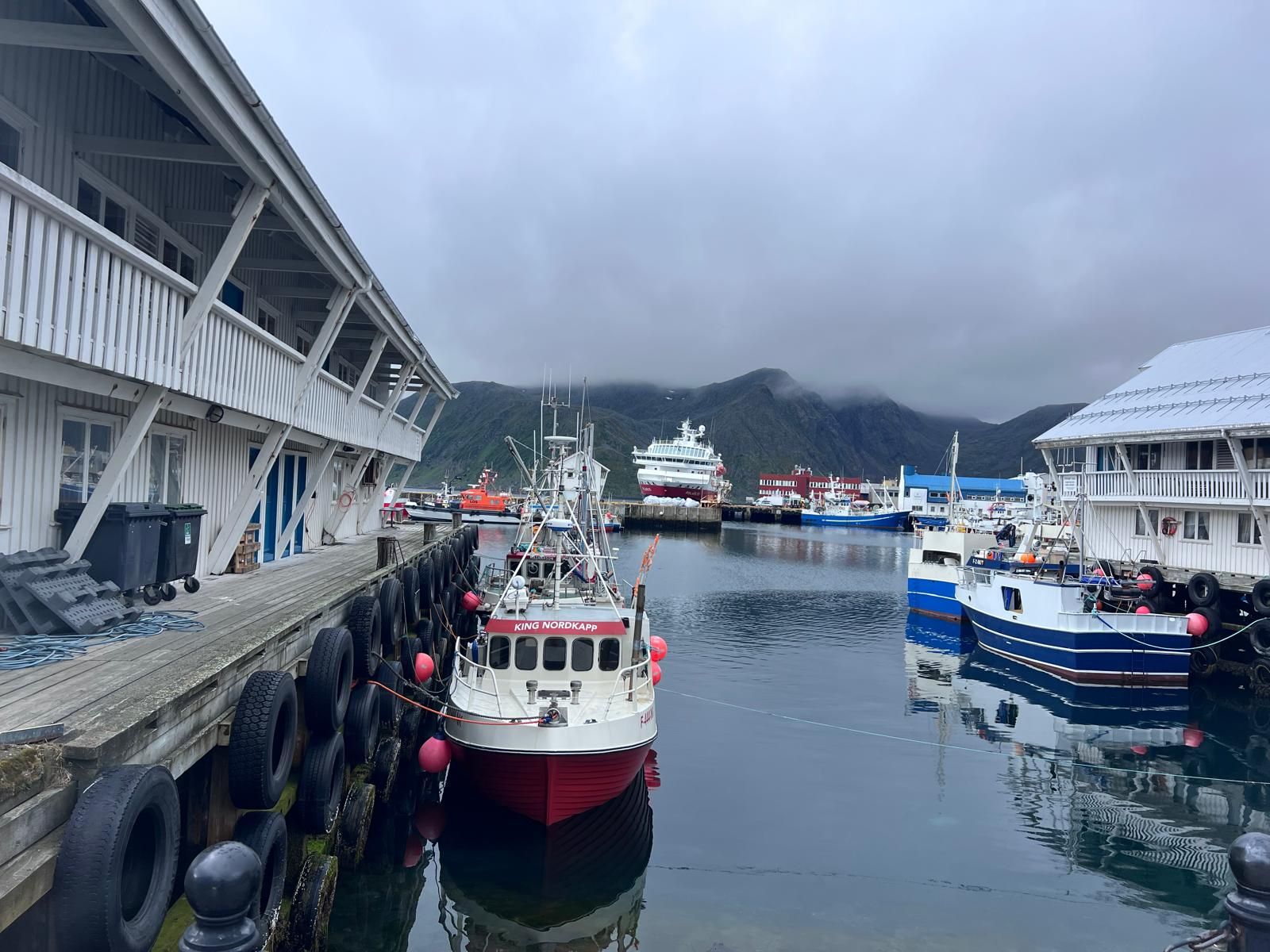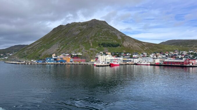 Heute war ein langer Aufenthalt in Honnigsvag vorgesehen. Das Hurtigroutenschiff verließen wir bei deutlich niedrigeren Temperaturen und Regen als zuvor. Es boten sich wieder mehrere Exkursionen zum Nordkap an. Honigsvag einer der nördlichsten Punkte Europas, ist das Tor zur Finnmark. Durch den Golfstrom gibt es hier einen eisfreien Hafen. Bis Ende Juli ist es hier durchgehend hell, die Sonne verschwindet nicht hinter dem Horizont.