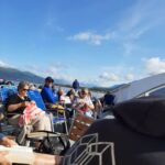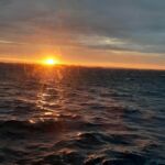 Nach wunderschönem Sonnenuntergang begann der Tag auch wieder mit Sonnenschein. Wir fahren der Küste entlang mit einer beeindruckenden Mischung aus Fjorden, Schären und Bergformationen. Auf der weiteren Fahrt gen Süden überqueren wir den Polarkreis, wo im Gegensatz zur Fahrt gen Norden, eine Lebertran-Zeremonie stattfindet. Kurz vor Sandnessjoen fährt das Schiff an der berühmten Bergkette der sieben Schwestern vorbei (De Syr Sostre). Es handelt sich um 7 markante Gipfel. Eine Sage erzählt, dass es sich um 7 versteinerte Troll Schwestern handelt, die zu Stein wurden. Auf der weiteren Fahrt beeindruckt uns der Berg Torghatten mit seinem natürlichen Loch von 35 Meter Durchmesser und einer Länge von 160 Meter. Im Städtchen Bronnoysund hatten wir einen längeren Aufenthalt, sodass wir die Kreuzkirche von 1870 besuchen konnten. Zum Abendessen gab es dann ein 4‑gängiges „Fairwell-Dinner“ zum bevorstehenden Ende der Schiffstour. Wie an den meisten Abenden beendete ein Cocktail an der Bar, begleitet von einem grandiosen Sonnenuntergang, den Tag.