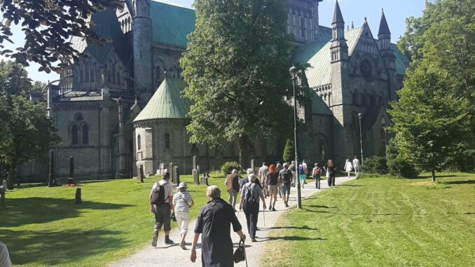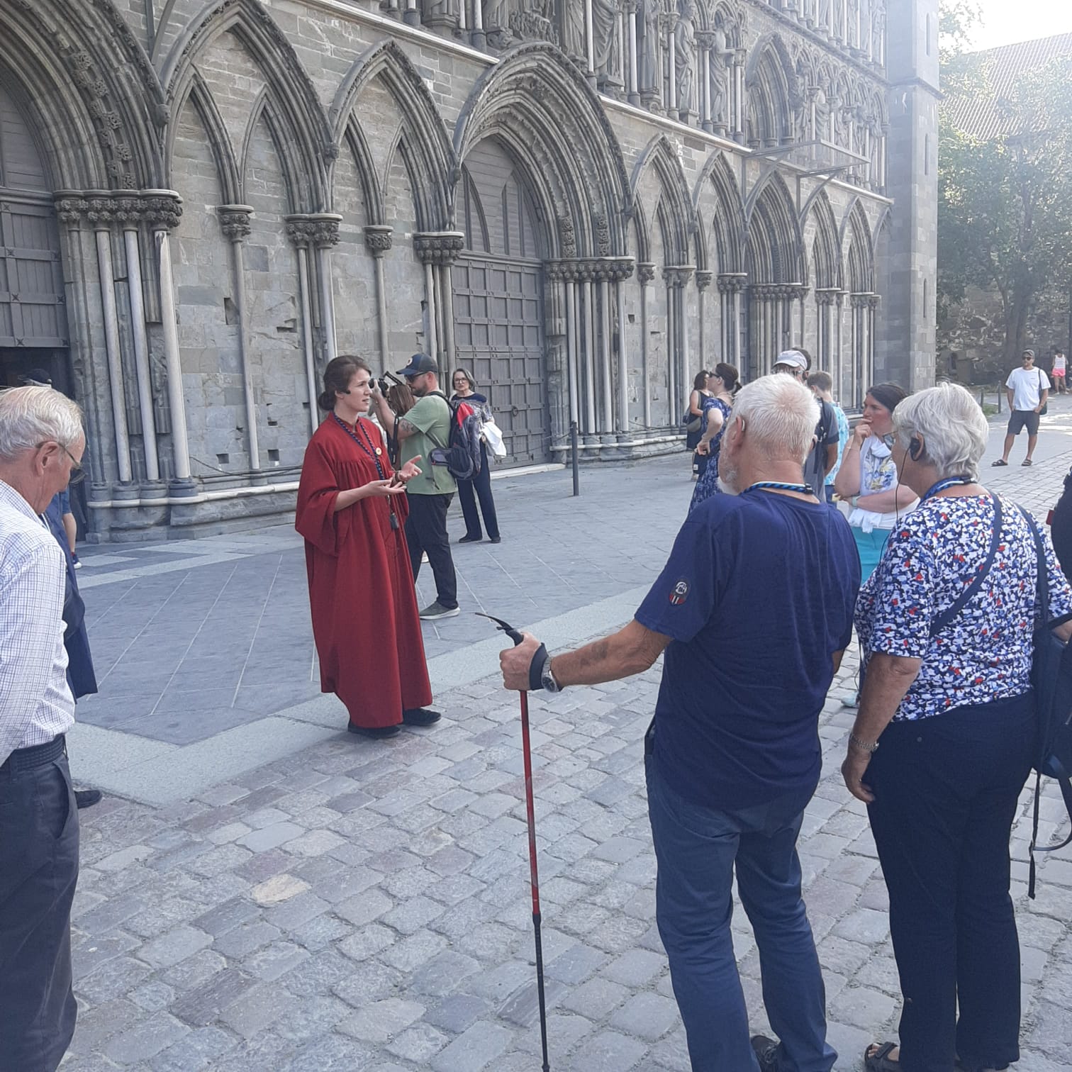 Es erwartet uns wieder ein superwarmer Tag. Wir erreichen die Krönungsstadt Trondheim. Die große Stadt wurde 997 von König Olaf Tryggrasen gegründet. Mit dem Bus und unserer kundigen Stadtführerin Wanda durchfahren wir die Stadt. Unser erstes Ziel war die Festung Kristensten aus dem 17. Jahrhundert. Von hier aus hatte man einen guten Überblick über die Stadt. Bei dem folgenden Spaziergang kamen wir zur Gamble Brybo, einer alten Stadtbrücke mit dem Tor des Glücks. Weiter ging es zum Nidaros-Dom, der Krönungskirche der norwegischen Könige. Der Dom wurde um 1300 fertiggestellt, im romanisch/gotischen Stil. Leider war um 12.45 Uhr wieder Boardtime und es ging weiter nach Rorvik.