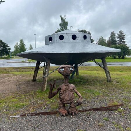 Wir starten am Morgen bei Regen – und der wird uns den ganzen Tag über begleiten. Die grauen Wolken, das feuchte Wetter und der Wind geben uns einen ersten echten Vorgeschmack auf den hohen Norden. Unser erster Halt ist an der Kirche von Kalix, die wir nur von außen besichtigen können, da gerade eine Messe abgehalten wird. Danach geht es weiter Richtung finnische Grenze.