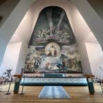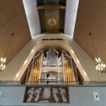 In Rovaniemi, der Hauptstadt Lapplands am nördlichen Polarkreis, besuchen wir die moderne, architektonisch außergewöhnliche Kirche von Rovaniemi mit ihrem spitz zulaufenden Dach und dem großen Altarfenster, das das Lichtspiel im Innenraum besonders macht.