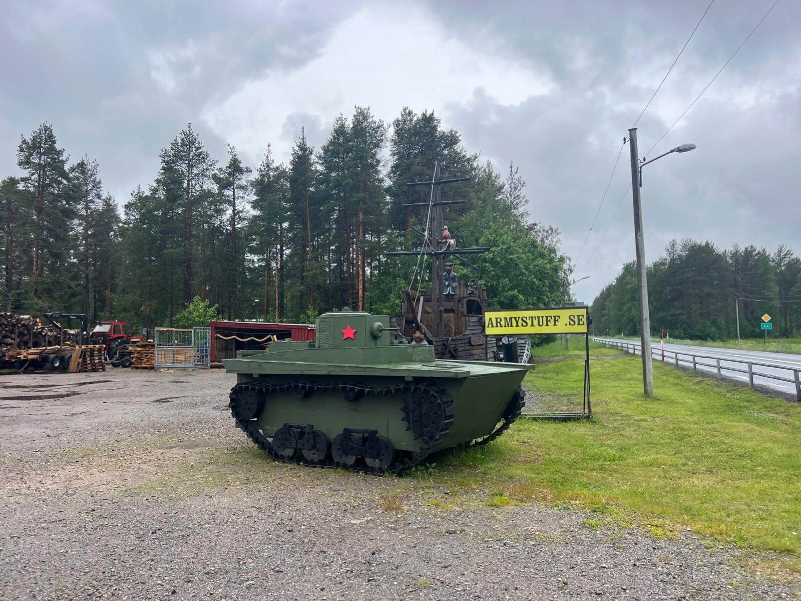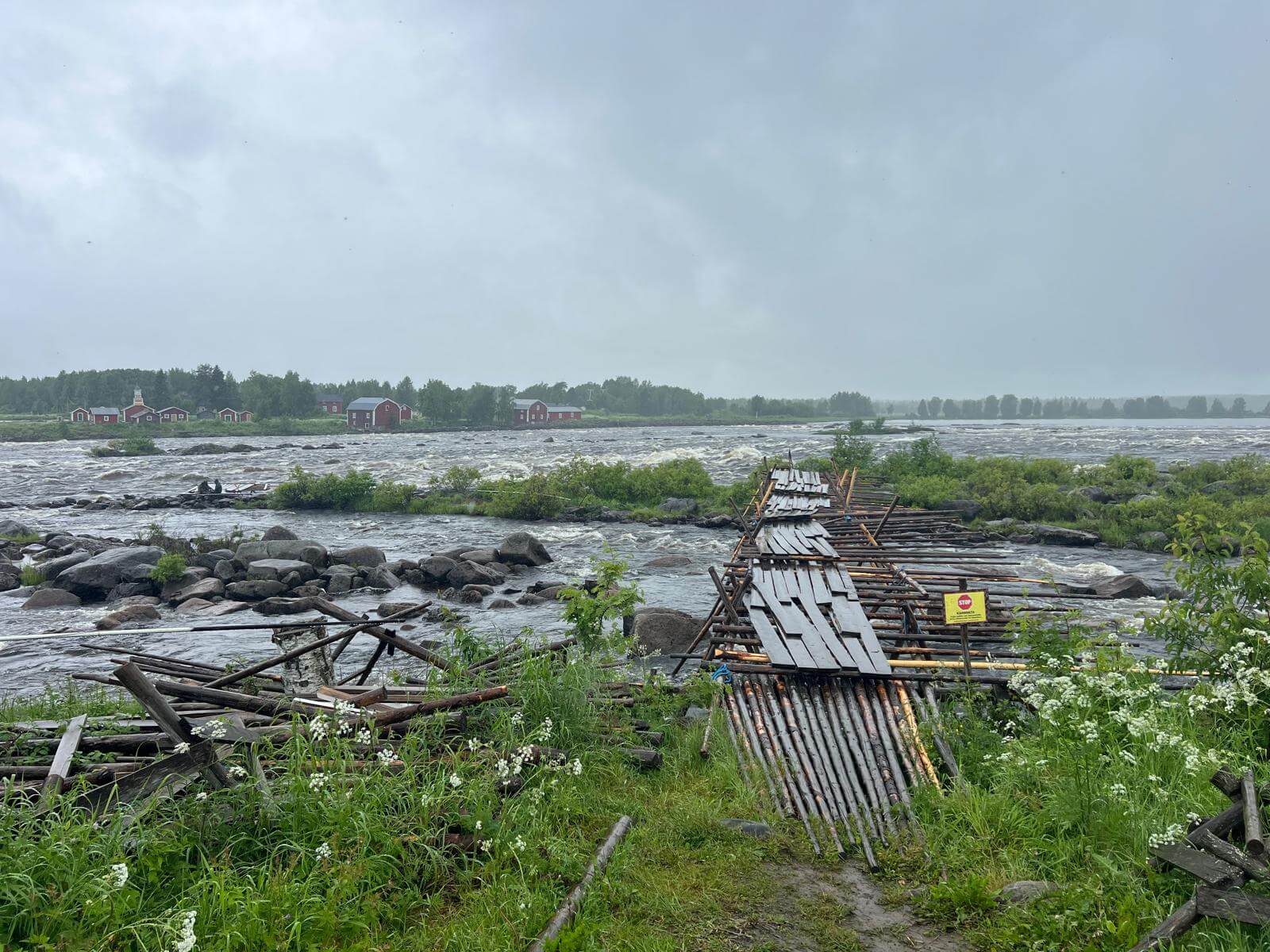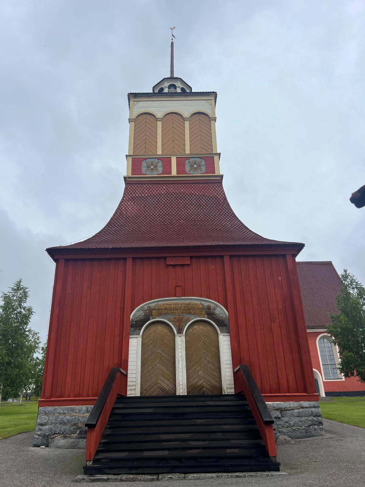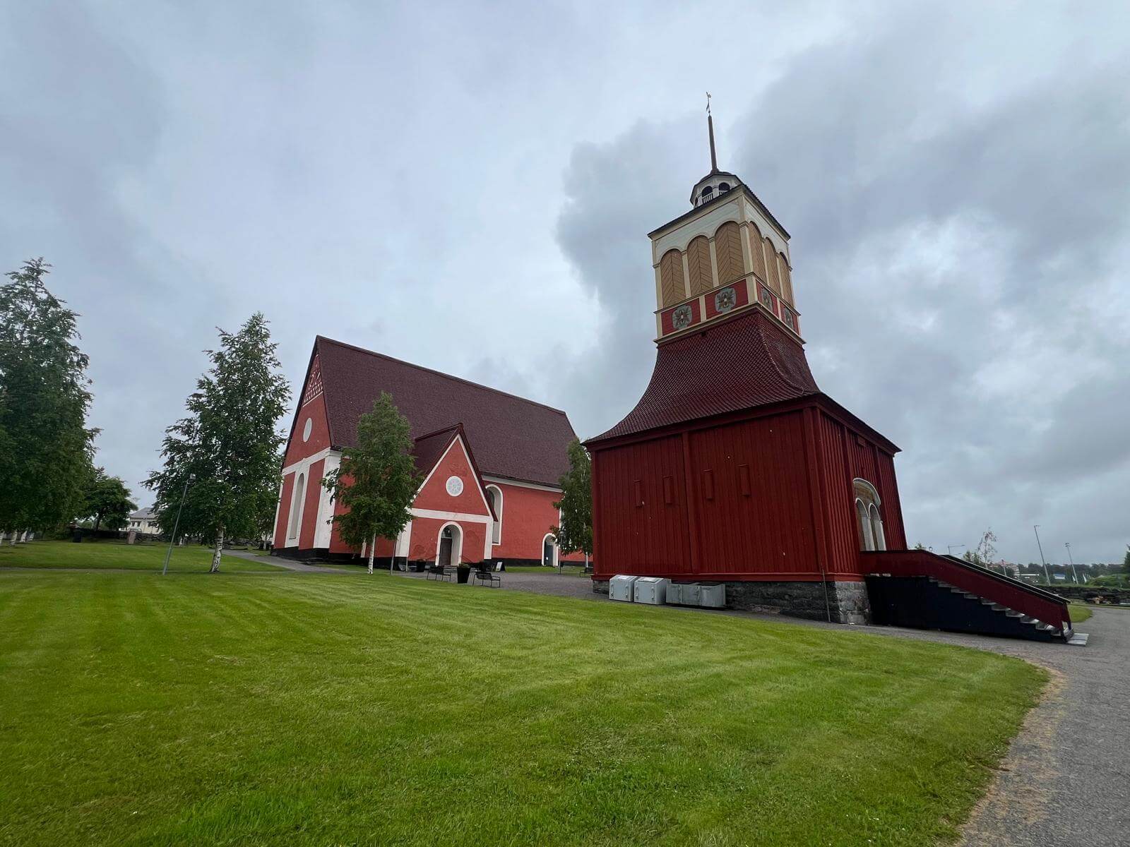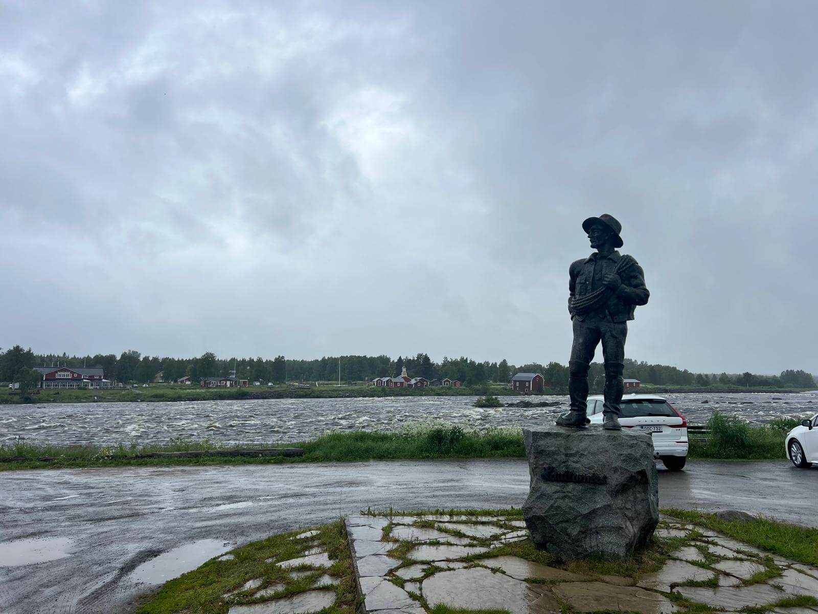Wir starten am Morgen bei Regen – und der wird uns den ganzen Tag über begleiten. Die grauen Wolken, das feuchte Wetter und der Wind geben uns einen ersten echten Vorgeschmack auf den hohen Norden. Unser erster Halt ist an der Kirche von Kalix, die wir nur von außen besichtigen können, da gerade eine Messe abgehalten wird. Danach geht es weiter Richtung finnische Grenze.