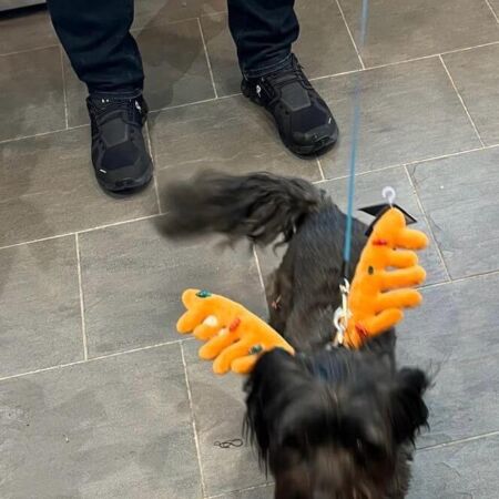 An dieser Stelle möchte ich euch Charlie vorstellen: Unser einziger Gruppenhund ist heute als Rentier verkleidet – zur Freude aller. Geduldig lässt er sich fotografieren, sorgt für viele Lacher und liebevolle Blicke und ist mit seinem charmanten Auftritt ein echtes Highlight dieses Tages.