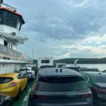 Unterwegs regnete es in Strömen, und bei diesem Wetter waren spontane Stopps oder Besichtigungen kaum möglich. Die meiste Zeit verbrachten wir im Fahrzeug, während draußen dunkle Wolken, Regen und Pfützen das Landschaftsbild bestimmten. In Klaipėda angekommen, setzte sich der Regen fort, doch wir nahmen dennoch die Fähre auf die Kurische Nehrung. Dort zahlten wir die Umweltabgabe, bevor wir auf ein frisch asphaltiertes Teilstück trafen, das uns eine ruhige Weiterfahrt ermöglichte.