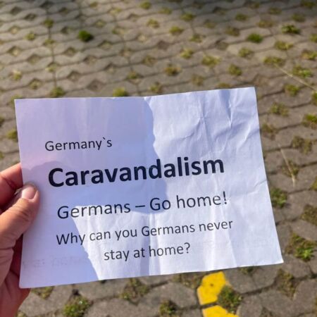 Der Tag beginnt mit einem Schreckmoment: An einem unserer Fahrzeuge finden wir einen Zettel unter dem Scheibenwischer – mit einer unschönen Botschaft: „Germans go home“. Leider sind wir nicht die ersten Reisenden, denen so etwas auf der Kurischen Nehrung passiert. Der Campingplatz informiert umgehend die Polizei, und die Überwachungskameras werden ausgewertet. Der Vorfall hinterlässt ein mulmiges Gefühl in der Gruppe.