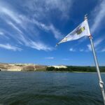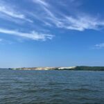 Anschließend unternehmen wir eine Bootsfahrt auf dem Kurischen Haff. Auf dem ruhigen Wasser gleiten wir entlang der Küste, vorbei an Dünen, kleinen Buchten und Natur pur. Wir nähern uns der russischen Grenze, weshalb unser Kapitän die Tour und alle Passagiere im Vorfeld anmelden muss. Auch vom Wasser aus erhalten wir viele spannende Informationen über die Nehrung – eine ganz besondere Perspektive.