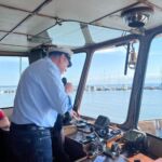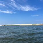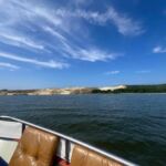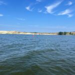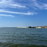 Anschließend unternehmen wir eine Bootsfahrt auf dem Kurischen Haff. Auf dem ruhigen Wasser gleiten wir entlang der Küste, vorbei an Dünen, kleinen Buchten und Natur pur. Wir nähern uns der russischen Grenze, weshalb unser Kapitän die Tour und alle Passagiere im Vorfeld anmelden muss. Auch vom Wasser aus erhalten wir viele spannende Informationen über die Nehrung – eine ganz besondere Perspektive.