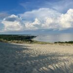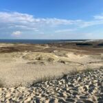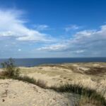 Zurück auf dem Campingplatz dann die erlösende Nachricht: Die Polizei konnte den Verursacher des Zettels identifizieren – ein deutscher Staatsbürger, der auf der Kurischen Nehrung lebt und sich offenbar über das Verhalten mancher Wohnmobilisten ärgert. Er wurde mitgenommen und entschuldigte sich persönlich bei einem unserer Teilnehmer. Der Schreck sitzt zwar noch tief, aber das Thema ist abgeschlossen. Zeitgleich spielt sich am Campingplatz eine kleine Rettungsaktion ab: Ein Teilnehmer kommt nicht in sein Fahrzeug – der Funkschlüssel reagiert nicht. Mit etwas Geschick zwängt er sich schließlich über die Fahrertür so weit ins Fahrzeug, dass er das Hubbett hochfahren und von innen die Tür öffnen kann. Die Ursache ist schnell gefunden: Eine leere Batterie im Schlüssel. Zum Glück können wir aushelfen – Problem gelöst, Weiterreise gesichert! Am Abend sitzen wir gemeinsam zur Routenbesprechung zusammen, einige machen sich noch auf den Weg zur Düne. Dort genießen sie einen beeindruckenden Ausblick über das Haff und die untergehende Sonne.