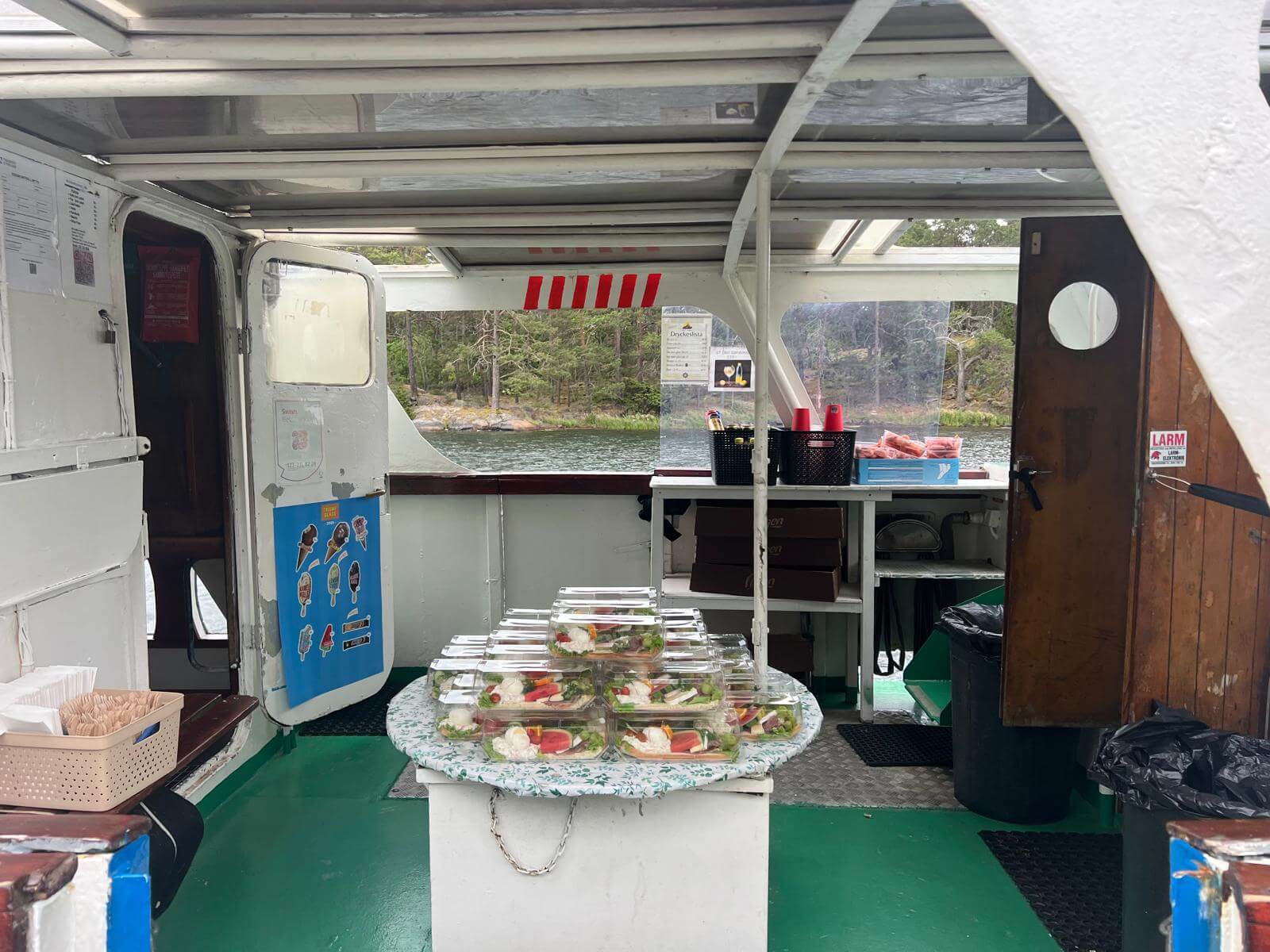 An Bord genießen wir ein typisch schwedisches „Landgång“ – ein reich belegtes Sandwich mit Fisch, Ei, Wurst und frischem Gemüse. Eine kulinarische Pause inmitten der Natur, die das Erlebnis perfekt abrundet.