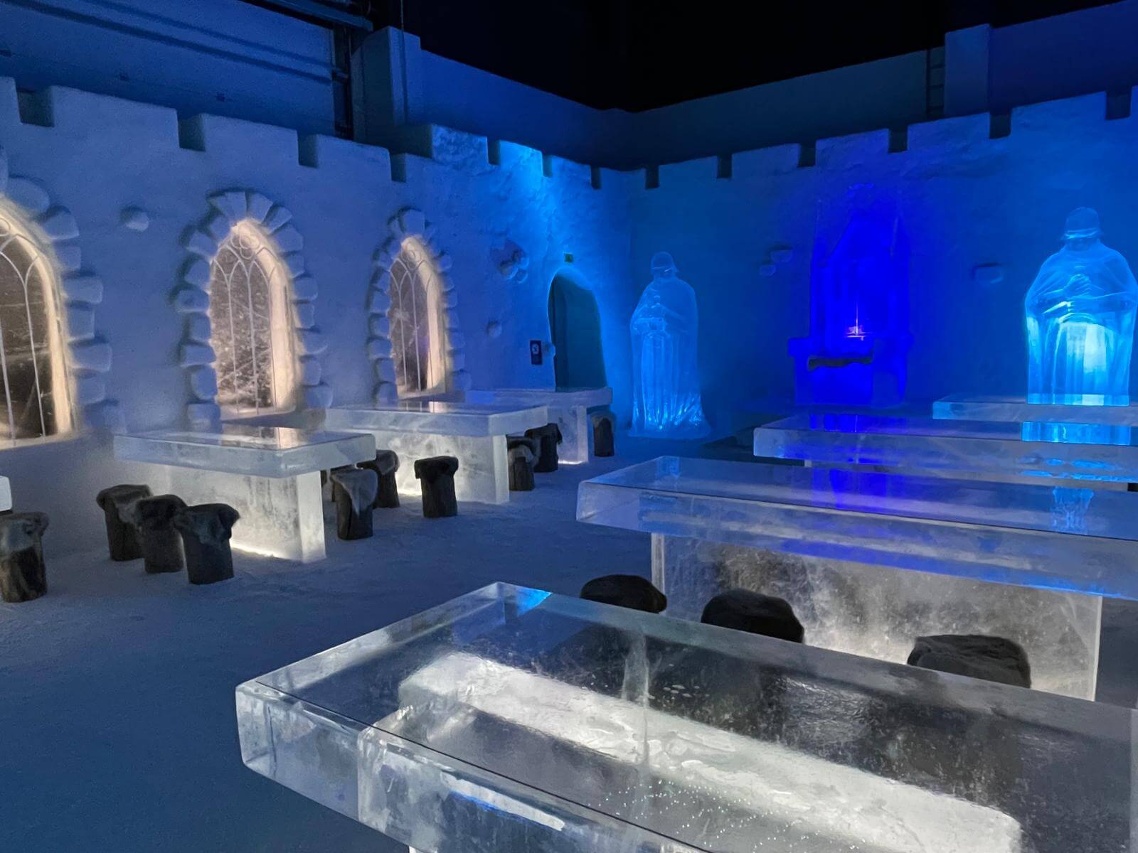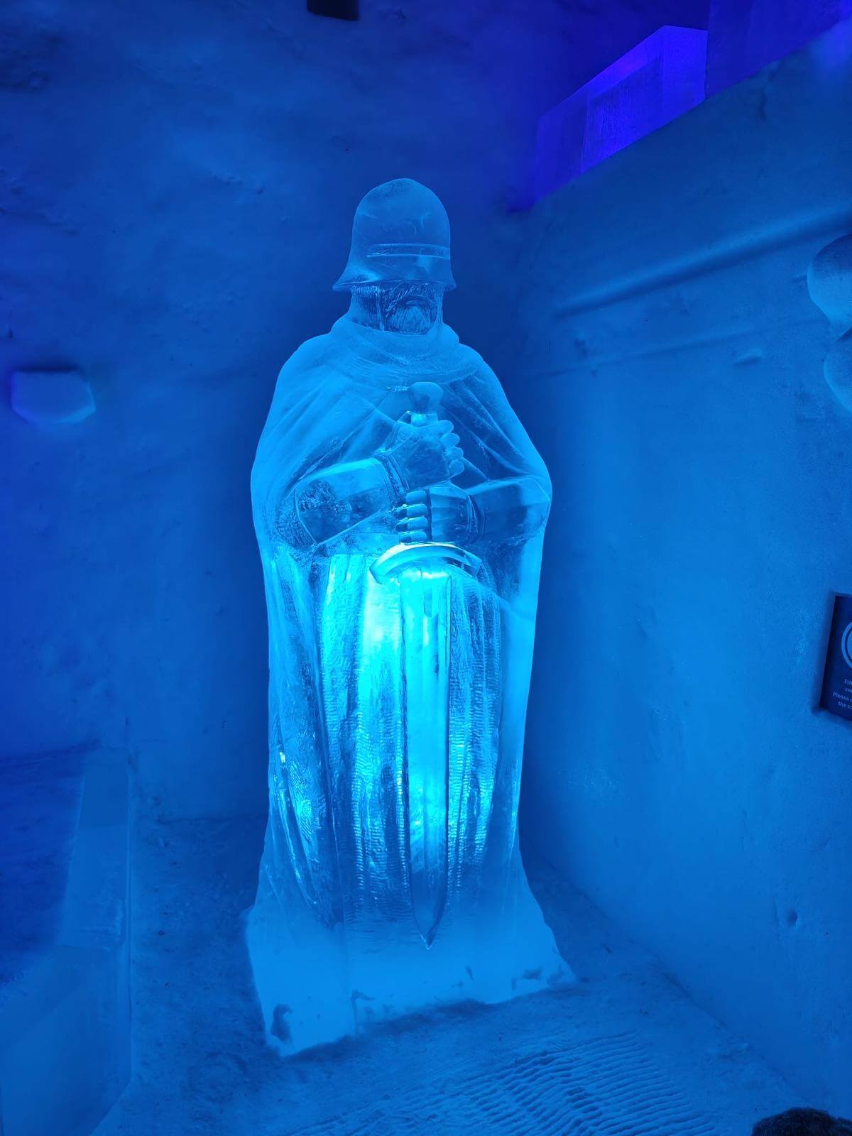 Danach geht es weiter zum Snow Castle 365: Dies ist eine ganzjährige Ausstellung von Eisskulpturen, die von örtlichen Künstlern jedes Jahr neu gefertigt werden. In diesem Jahr steht sie unter dem Motto „Ritter“.