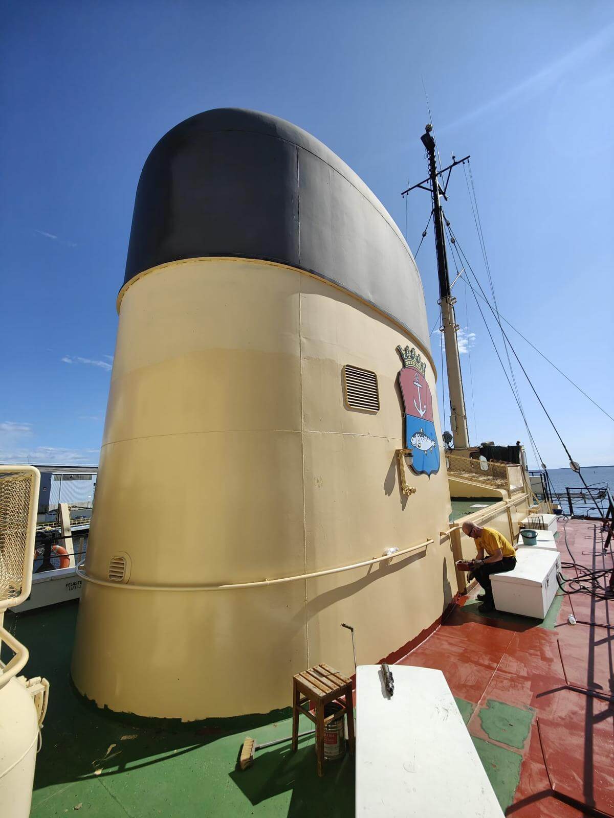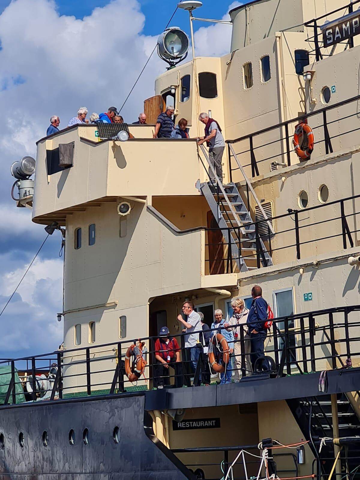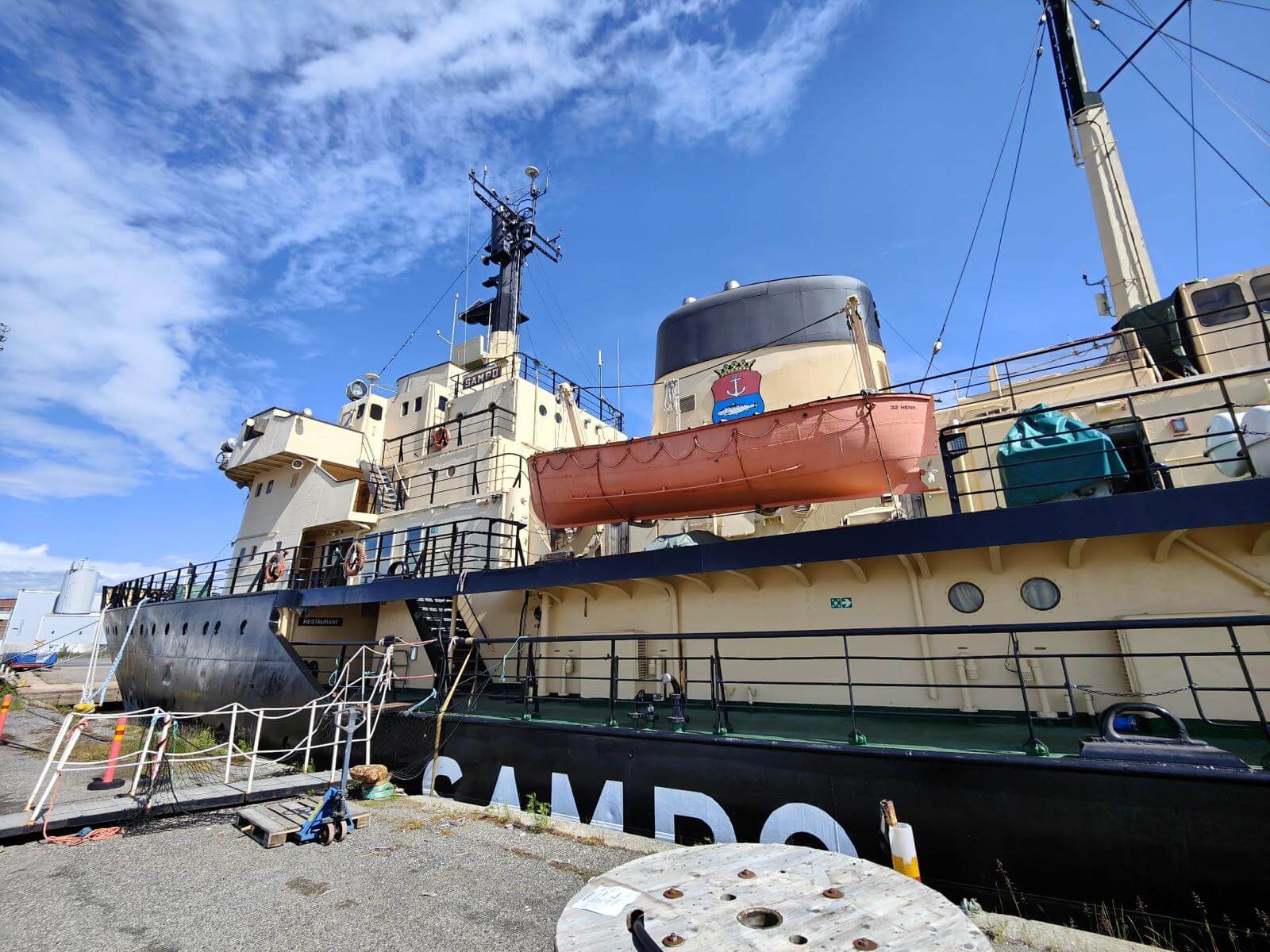 Wir betreten durch eine Schleuse den riesigen Raum und erleben erst einmal einen Temperatursturz auf – 5 Grad. Was wir dann sehen, ist beeindruckend. Aus riesigen Eisblöcken wurde eine Rutschbahn errichtet, vor der Eisskulpturen aufgestellt sind, von denen man den Eindruck hat, sie seien aus Glas. Wir fahren weiter in den Hafen von Kemi. Dort liegt der Eisbrecher Sampo vor Anker. Wir besichtigen im Rahmen einer Führung das 1961 erbaute Schiff mit seinen vier Dieselmotoren, die zusammen 8.800 PS erzeugen. Heute dient es als Museumsschiff und unternimmt im Winter Eisbrecherfahrten in die Ostsee, Badestopp inbegriffen – in speziellen Trockentauchanzügen versteht sich!