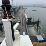 Wir erhalten problemlos unsere vorgebuchten Tickets und müssen bis zur Ankunft der Fähre die übliche Wartezeit im Verladebereich verbringen.