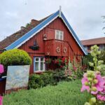 Unsere Fremdenführerin erklärt uns die Geschichte und die wichtigsten Gebäude des früheren Fischerdorfes. Besonders schön sind die Häuser anzuschauen, bei denen die Giebelbretter und Fensterläden mit dem besonders leuchtenden Blau, dem Niddener Blau, verziert sind.