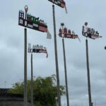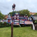 Eine weitere Besonderheit sind die überall aufgestellten Kurenkahnwimpel. Sie waren früher die „Autonummer“ der Fischerboote.