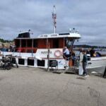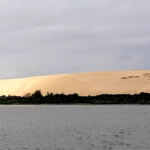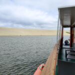Die größte Attraktion ist die sog. Große Düne, die wir erst sehen, nachdem wir mit dem Boot an der kleineren Parnidis-Düne vorbeigefahren sind. Sie ist mit ca. 50 m Höhe die zweitgrößte Wanderdüne Europas. Mit dem Ausflugsschiff fahren wir an der Küste entlang und können die riesige Düne von der Meeresseite aus bestaunen. Kurz vor der russischen Grenze kehren wir wieder um. Unser Kapitän erklärt uns die Besonderheit im Haff: Flora und Fauna und jahreszeitlich bedingte Veränderungen.
