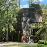 Unser nächstes Ziel sind die imposanten Überreste der berühmt-berüchtigten Wolfsschanze, dem Führerhauptquartier im II. Weltkrieg. Die 24 ha große Bunkeranlage mit ihren bis zu 8 m dicken Stahlbetonwänden sollte von der Wehrmacht bei Anrücken der Roten Armee mit 4 Tonnen Sprengstoff pro Bunker zerstört werden. Dies zeigte wenig Wirkung, so können wir jetzt noch Teile der Anlage besichtigen, in der früher bis zu 3000 Personen beschäftigt waren.