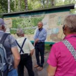 An den Mauerresten der ehemaligen Lagebaracke wird mit einer Gedenktafel dem missglückten Attentat auf Hitler am 20.07.1944 gedacht. Unser örtlicher Führer in der Wolfsschanze ist ein ausgewiesener Experte; er hat schon ein Buch über die Anlage geschrieben und kann daher auf manche Irrtümer in der geschichtlichen Überlieferung hinweisen.