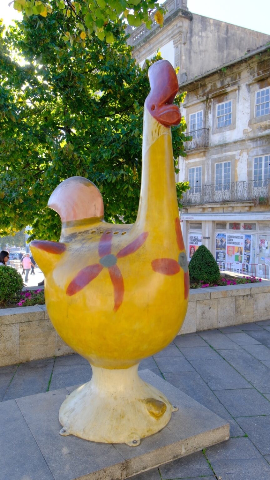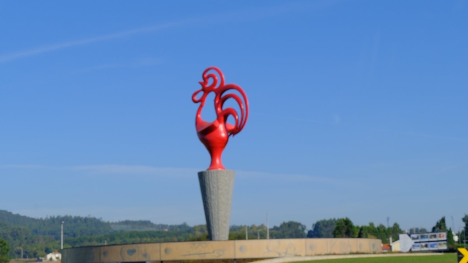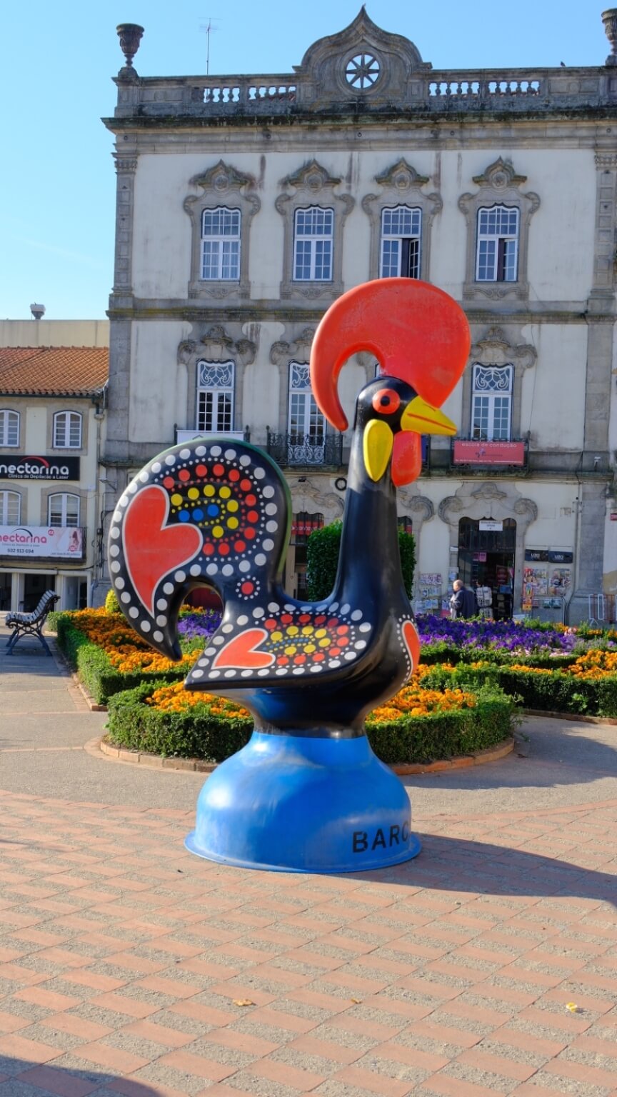Unser erster Stopp des Tages ist Barcelos. Schon von weitem entdecken wir das bekannte Wahrzeichen der Stadt – den farbenfrohen Hahn von Barcelos, der für viele ein Symbol Portugals geworden ist. Am Hauptplatz gönnen wir uns eine Pause: Wir sitzen in einem kleinen Straßencafé, trinken gemütlich unseren Kaffee und genießen ein Stück Kuchen. Die Innenstadt ist wirklich nett, mit ihren alten Häusern, bunten Fliesen und einer entspannten Atmosphäre.