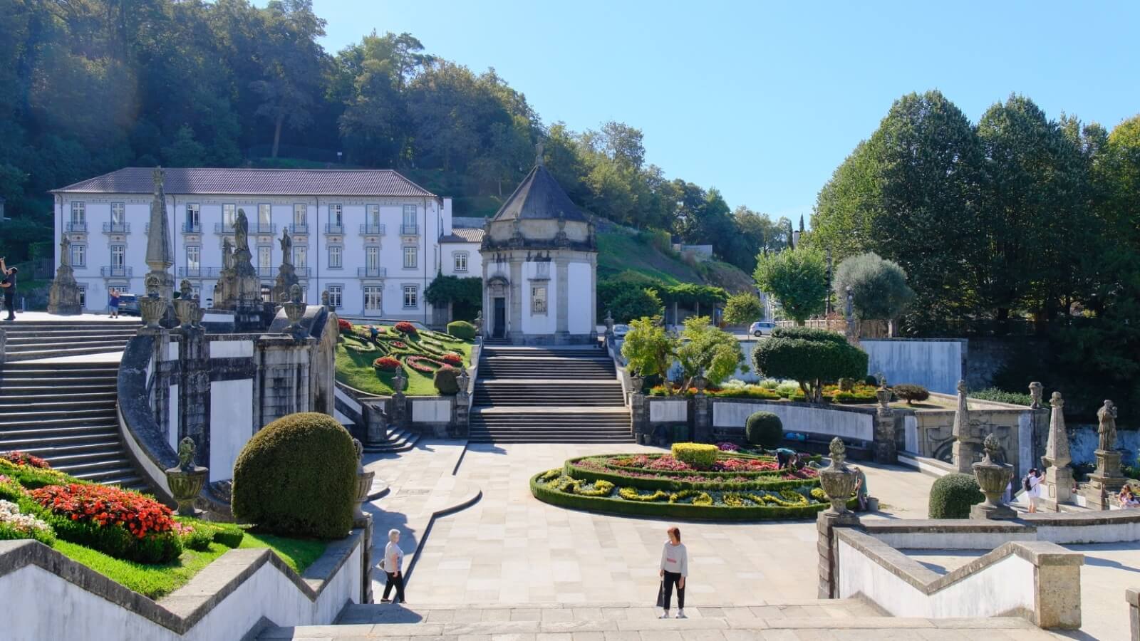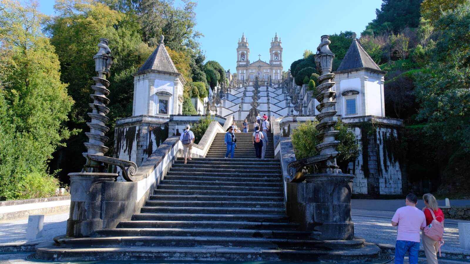 Anschließend setzen wir unsere Fahrt mit den Wohnmobilen fort und steuern Braga an. Dort besuchen wir die beeindruckende Wallfahrtsstätte Bom Jesus do Monte. Einige von uns nehmen sportlich die 540 Stufen zu Fuß in Angriff – entweder hinauf oder hinunter –, während andere sich für die charmante alte Zahnradbahn entscheiden. Die Temperatur klettert heute auf stolze 30 °C, ungewöhnlich warm für Mitte Oktober. Die Landschaften unterwegs sind traumhaft schön – sanfte Hügel, kleine Dörfer, grüne Täler. Gegen Nachmittag treffen wir schließlich auf unserem Campingplatz in Vila Real ein.