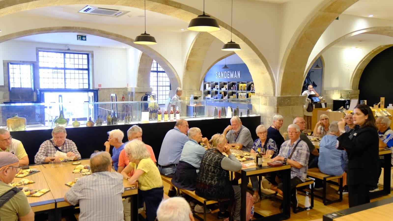 Am Nachmittag treffen wir uns wieder zur gemeinsamen Führung in der traditionsreichen Weinkellerei Sandeman. Bei angenehmer Atmosphäre erfahren wir Interessantes über die Geschichte und Herstellung des berühmten Portweins. Den krönenden Abschluss bildet eine Verkostung – begleitet von einem feinen Käseteller. Bevor wir wieder mit dem Bus zurück zum Campingplatz fahren, nutzen einige die Gelegenheit, um noch ein paar Flaschen Portwein für Zuhause mitzunehmen.