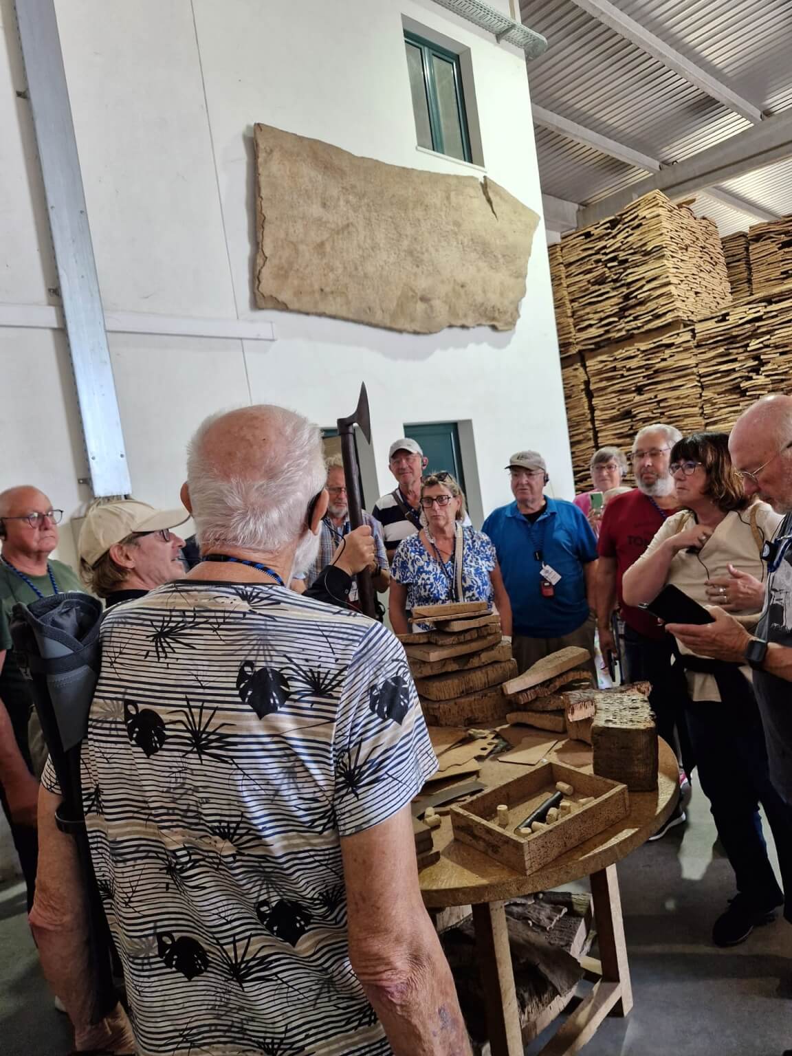 Nach der Besichtigung machen wir eine kleine Kaffeepause, dann fahren wir weiter. Andre gibt uns viele Informationen zur Landschaft und zu dem über 18 km langen Aquädukt, das bis nach Evora führt. Durch Korkeichenwälder gelangen wir dann zur Korkfabrik. Wir erhalten viele Erläuterungen zur Arbeit der Korkschäler, über Kork als solches und seine Anwendungsgebiete. Im angeschlossenen Geschäft haben wir dann die Möglichkeit, Produkte aus Kork zu erwerben. Es gibt so viel mehr als Wein- oder Sektkorken.