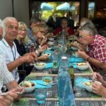 Heute startet sie wieder! Die Kuga Provence Tour 25. Der Start ist in Doussard am südlichen Zipfel des „Lac du Annecy“. Der Lac Annecy ist der fünftgrößte See Frankreichs und gilt als einer der saubersten Seen Europas. Das Wasser hat Trinkwasserqualität. Rund um den See liegen Berge, die zum Wandern einladen. Ein Eldorado für Gleitschirmflieger. Am Nachmittag trafen sich die Tour-TeilnehmerInnen bei bestem Reisewetter, um gemeinsam bei einem Glas Cremont auf die Reise anzustoßen und einen regionalen Kuchen zu probieren. Dann gab es ein ausführliches Briefing. Die Karte der Provence hatte der Tourguide am Wohnmobil fixiert und so konnten alle die Erläuterungen zur gesamten Strecke gut mitverfolgen. Die neuen Navigationsgeräte mit der gesamten Provencetour wurden getestet und erklärt, die Audioguides für die Stadtführungen wurden ausgegeben und direkt getestet. Zum Abschluss des Abends servierte die Küche des Restaurants auf dem 5-Sterne-Campingplatz einen Salat mit lauwarmem Ziegenkäse, einen Hühnchencurry und als Dessert eine Tarte Citron Meningueé. Begeistert berichteten einige zwischen den Gängen von einer Radtour, die sie um den See nach Annecy, dem „Venedig der Alpen“ gemacht haben. Ein letzter Blick auf den See im Abendlicht und mit Vorfreude auf die Tour sagten sich die Teilnehmer gute Nacht.