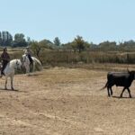Heute stand ein spannender Ausflug auf dem Programm. In der Camargue heißen die traditionellen Stierzüchter Manadiers, die in Manades halbwilde Camargue-Stiere (und oft auch Pferde) halten. Wir besuchten heute die Manade Arnaud, etwa 12 km von unserem Campingplatz entfernt. Stephanie Arnaud, eine Kölnerin, die es vor gut 20 Jahren in die Camargue verschlagen hat, führte uns in die Welt der Stierzüchter ein. Es gibt rund 180 Manadiers, rund 10.000 Stiere und rund 17.000 Camargue Pferde. Die Stierzüchter leben von der Zucht, dem Verkauf von Stierfleisch, welches sehr dunkel und sehr kräftig ist, dem Einsatz ihrer Stiere in der Course Camarguaise und den Führungen von interessierten Besuchern in der Camargue. Jährlich werden über 600 Course Camarguaise-Wettkämpfe organisiert – in der Camargue, dem Languedoc und der Provence. Die Course Camarguaise ist ein traditioneller, unblutiger Stierwettkampf aus der Camargue – sportlich, kultiviert und respektvoll gegenüber dem Tier. Sie ist tief in der provenzalischen Kultur verwurzelt und ein zentrales Element des Lebens in Südfrankreich. Bei der Course Camarguaise handelt es sich um einen Wettbewerb zwischen jungen Männern (den Raseteurs) und einem Camargue-Stier (Taureau). Ziel: Die Raseteurs versuchen, dem Stier kleine Trophäen (wie eine Cocarde) zwischen seinen Hörnern mit einem Haken (Crochet) abzunehmen, ohne ihn zu verletzen. Ganz wichtig ist der Unterschied zur Corrida! Der Stier wird nicht getötet! Er bleibt mehrmals im Jahr im Einsatz und wird bei Erfolg sogar berühmt (ähnlich wie ein Sportler). Rund 100 Stiere pro Jahr nehmen regelmäßig an Wettbewerben teil. Preisgekrönte Stiere sind echte regionale Helden und werden oft 10–15 Jahre alt. Nach Ihrem Einsatz, so Madame Arnaud, bekommen sie ein Gnadenbrot und sehr erfolgreiche Stiere werden nach Ihrem Ableben, mit dem Blick zum Meer, aufrecht stehend beerdigt. Auch die Grabstätte wird zum Jahrestag bedacht. Ein leckeres 3-Gänge-Mittagsessen (Stierwurst und Pastete, Camargue-Reis und Stiergulsch, Apfeltarte) gab es dann zum Abschluss der Veranstaltung. Den Rest des Tages wurde relaxt, gebadet und gechillt.