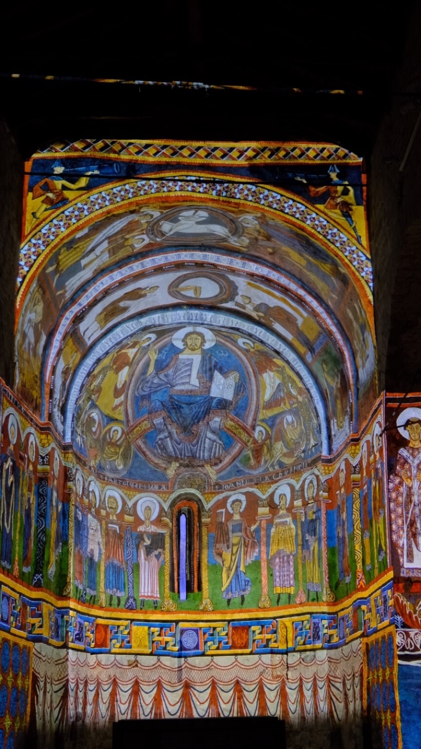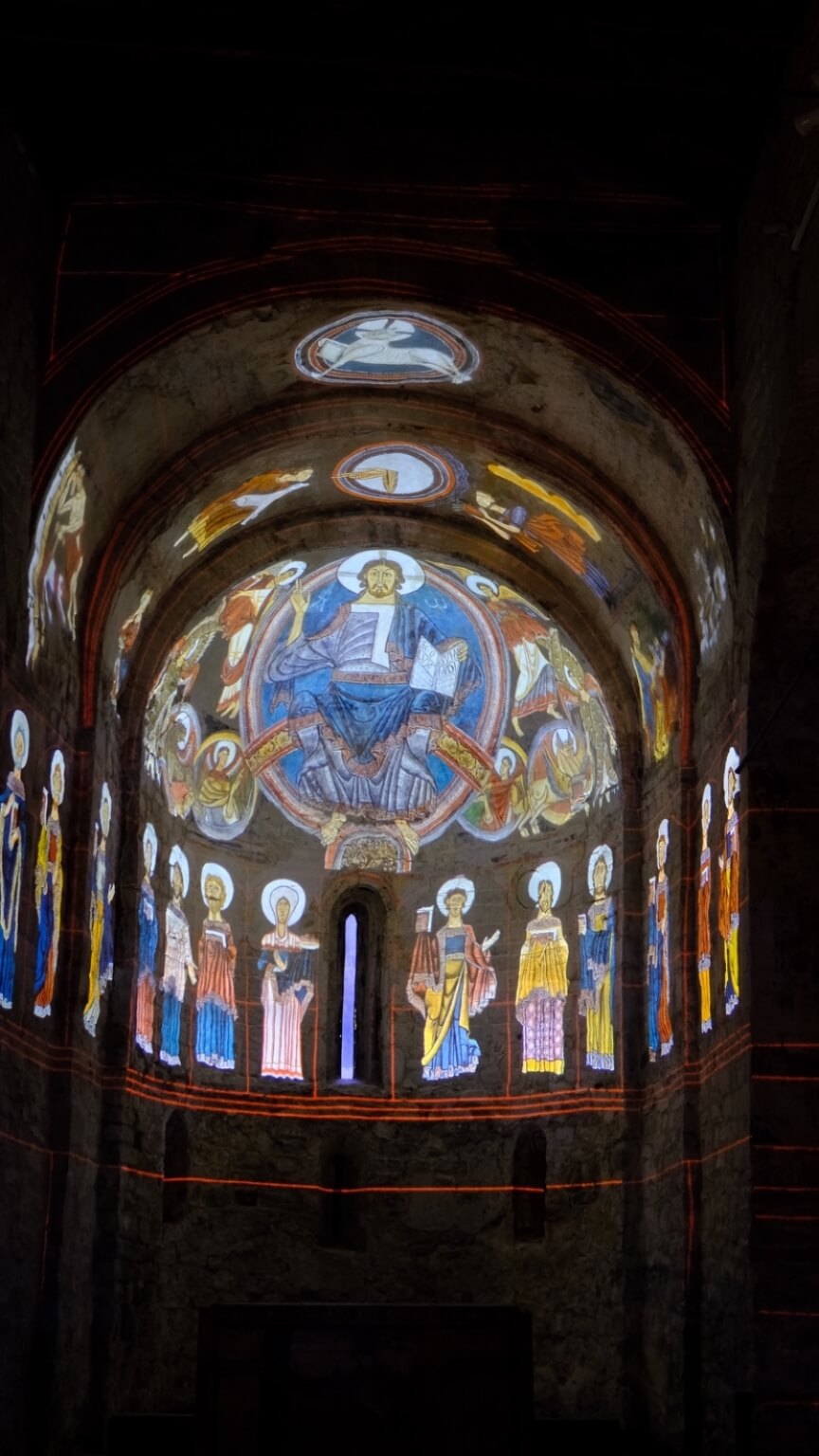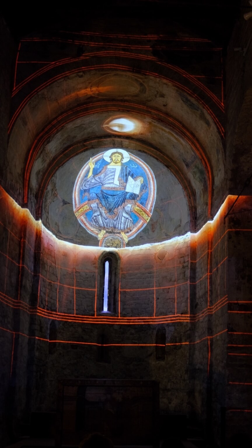 In Taüll werden in der romanischen Kirche Santa Maria mittels einer Licht-Laser-Show die malerischen Fresken von seinerzeit nachgeahmt.