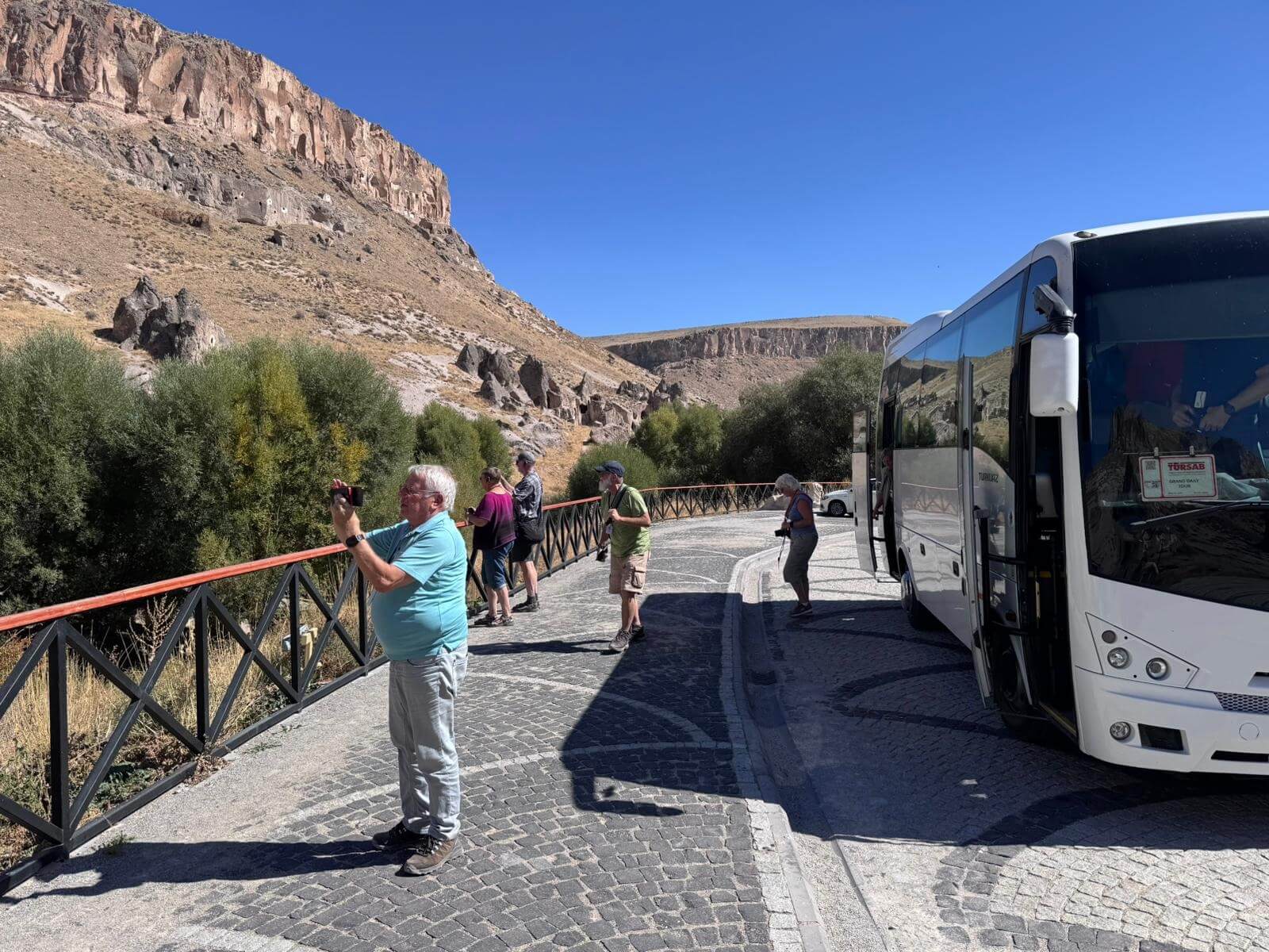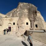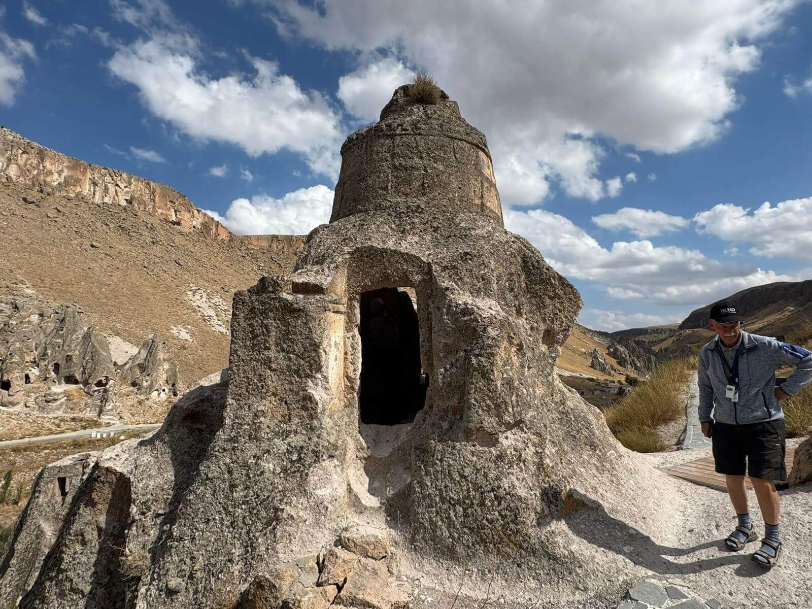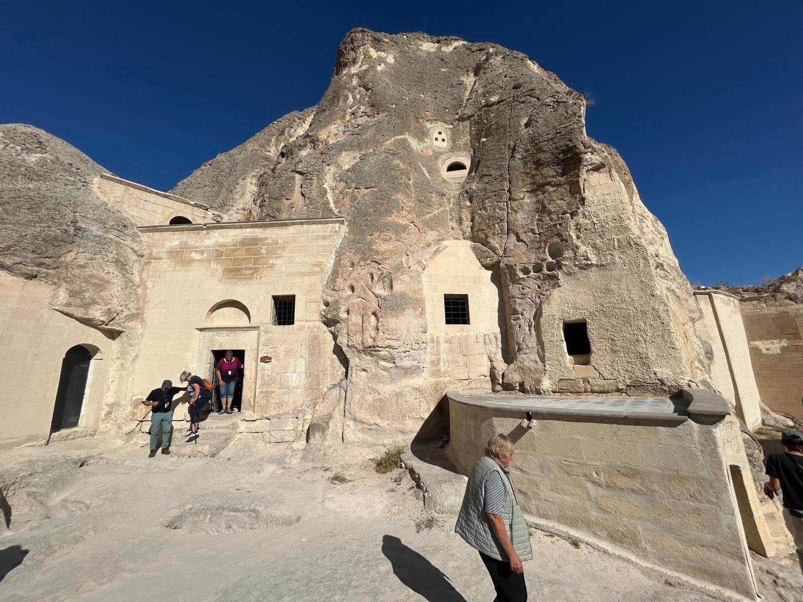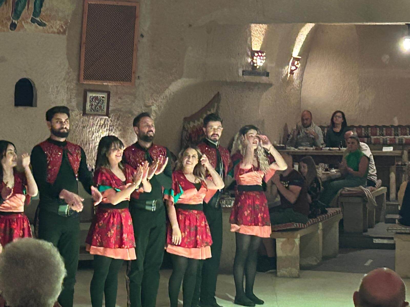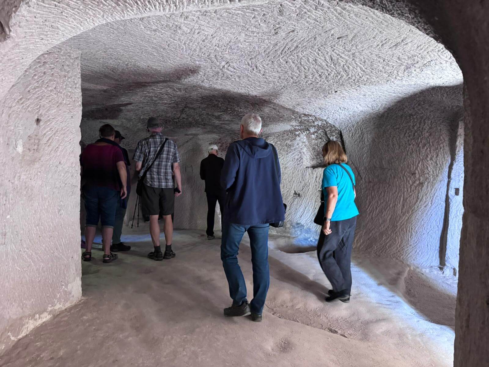 Am Morgen starten wir mit unserem Guide und einem Bus in eine bizarre Welt. Vor rund 80 Millionen Jahren haben zwei Vulkane diese Region mit ihrer Asche zugedeckt. Über die Jahrtausende hinweg verfestigte sie sich zu Tuffstein, an der Oberfläche hart, darunter weich wie Sandstein. Die Erosion sorgte dann für Formationen, die nahezu einzigartig in der Welt sind. Wir besuchten das Keslik-Kloster. Danach fahren wir zu einer Ausgrabung, die uns einen Blick in das Leben einer vergessenen Stadt der Römer in Kappadokien gewährt. Das römische Bad mit Fußbodenheizung und die Mosaikböden lassen schon ein Lebensniveau ahnen, das wir heute als Spa bezeichnen. Im Soganil Tal besuchten wir eine kürzlich renovierte christliche Höhlenkirche mit wundervollen Fresken, um danach auf einem kurzen Bergweg einen kleinen Teil der Hinterlassenschaften der vom 9. bis ins 13. Jahrhundert hier siedelnden byzantinischen Mönche anzusehen. Dann gibt es einen leckeren Brunch mit herrlicher Aussicht auf die umliegende Natur. Nach unserer Rückkehr im Camp waren sich alle einig, dass das ein weiterer sehr beeindruckender Höhepunkt unserer Reise war. Am späteren Abend bringt uns ein Bus zu einem türkischen Folkloreabend. Bei einem traditionellen türkischen Dinner erleben wir interessante Tanzdarbietungen, in die auch viele Zuschauer und natürlich auch einige von uns einbezogen werden. Nach diesem erlebnisreichen Tag hat kurz vor Mitternacht wohl keiner Probleme, in den Tiefschlaf zu fallen.