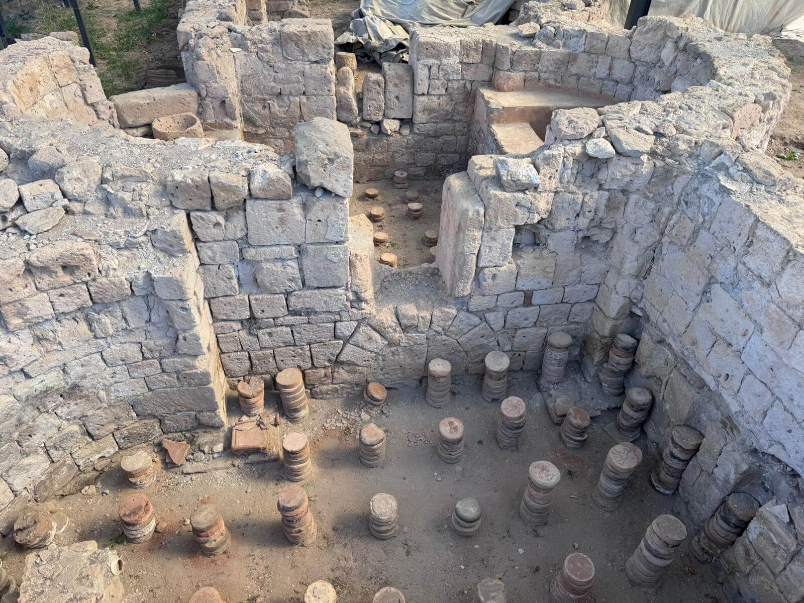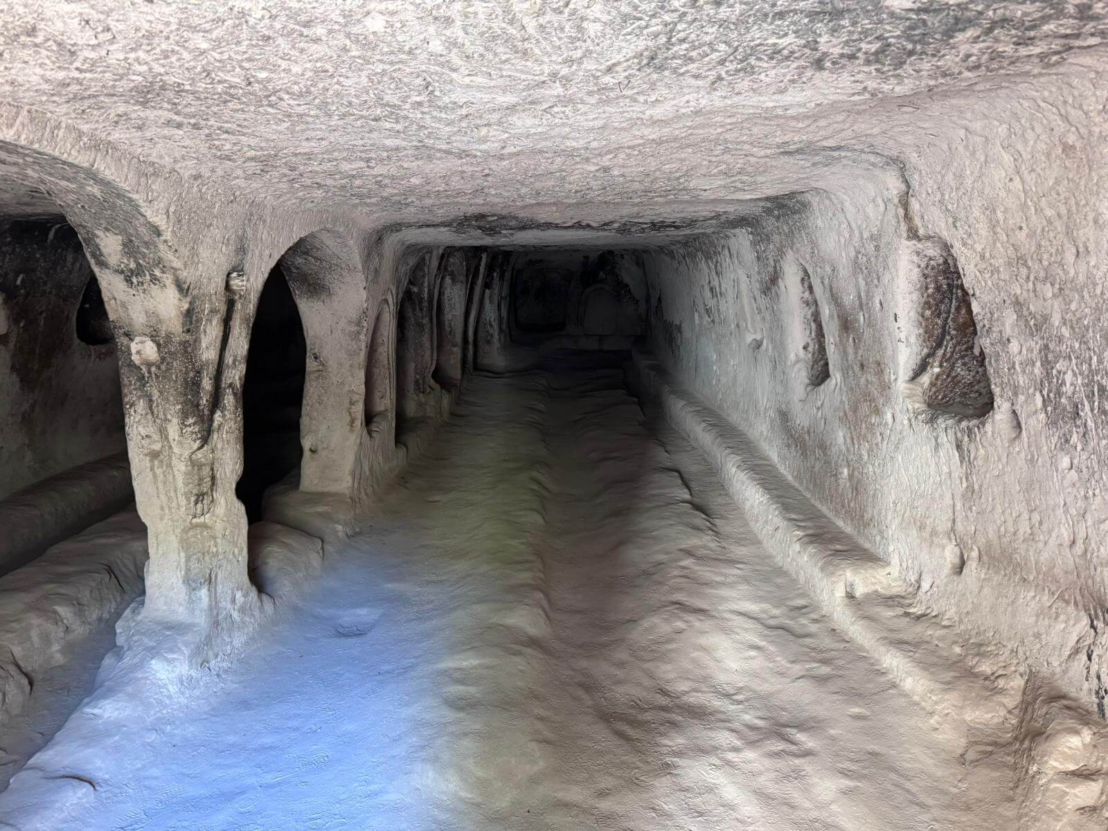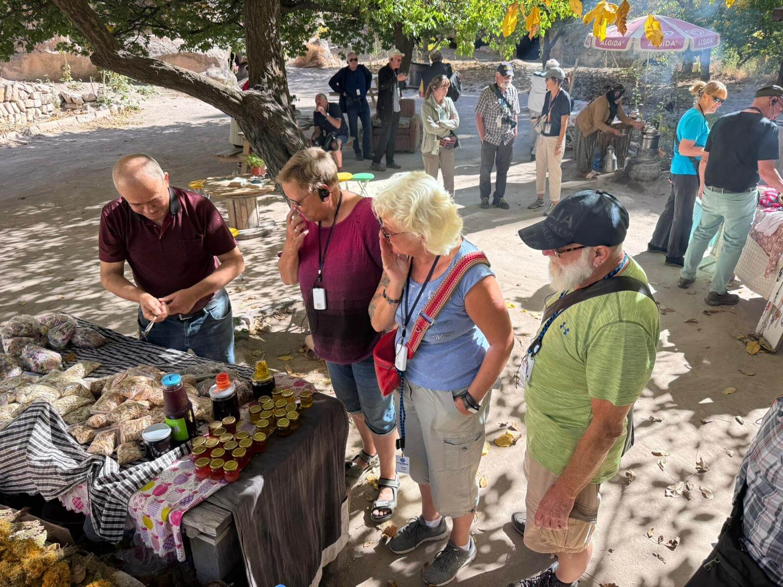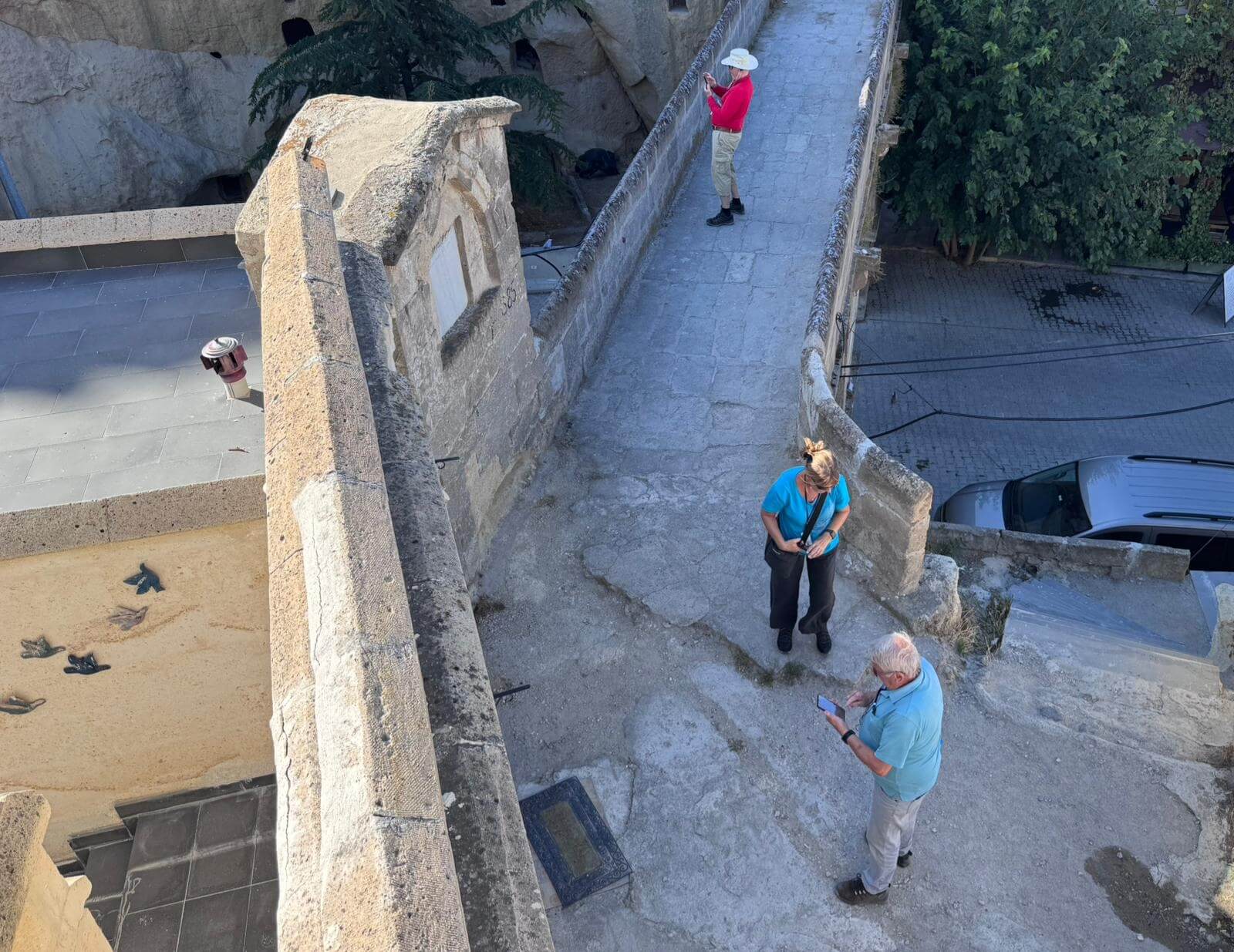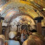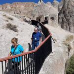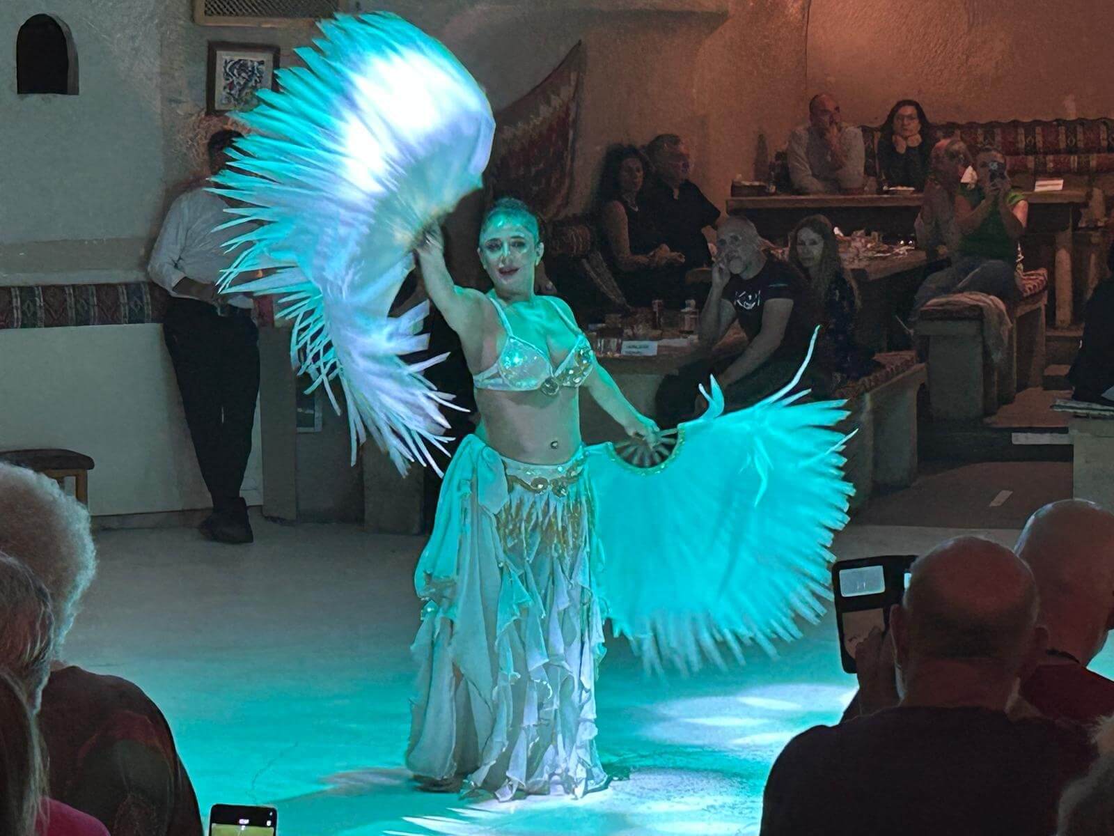 Am Morgen starten wir mit unserem Guide und einem Bus in eine bizarre Welt. Vor rund 80 Millionen Jahren haben zwei Vulkane diese Region mit ihrer Asche zugedeckt. Über die Jahrtausende hinweg verfestigte sie sich zu Tuffstein, an der Oberfläche hart, darunter weich wie Sandstein. Die Erosion sorgte dann für Formationen, die nahezu einzigartig in der Welt sind. Wir besuchten das Keslik-Kloster. Danach fahren wir zu einer Ausgrabung, die uns einen Blick in das Leben einer vergessenen Stadt der Römer in Kappadokien gewährt. Das römische Bad mit Fußbodenheizung und die Mosaikböden lassen schon ein Lebensniveau ahnen, das wir heute als Spa bezeichnen. Im Soganil Tal besuchten wir eine kürzlich renovierte christliche Höhlenkirche mit wundervollen Fresken, um danach auf einem kurzen Bergweg einen kleinen Teil der Hinterlassenschaften der vom 9. bis ins 13. Jahrhundert hier siedelnden byzantinischen Mönche anzusehen. Dann gibt es einen leckeren Brunch mit herrlicher Aussicht auf die umliegende Natur. Nach unserer Rückkehr im Camp waren sich alle einig, dass das ein weiterer sehr beeindruckender Höhepunkt unserer Reise war. Am späteren Abend bringt uns ein Bus zu einem türkischen Folkloreabend. Bei einem traditionellen türkischen Dinner erleben wir interessante Tanzdarbietungen, in die auch viele Zuschauer und natürlich auch einige von uns einbezogen werden. Nach diesem erlebnisreichen Tag hat kurz vor Mitternacht wohl keiner Probleme, in den Tiefschlaf zu fallen.