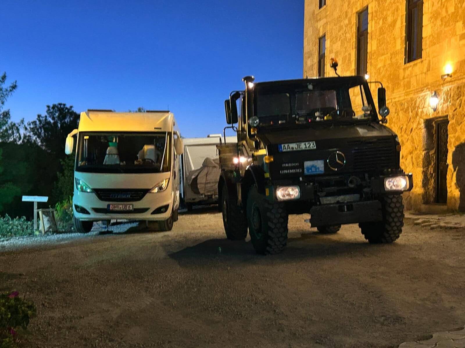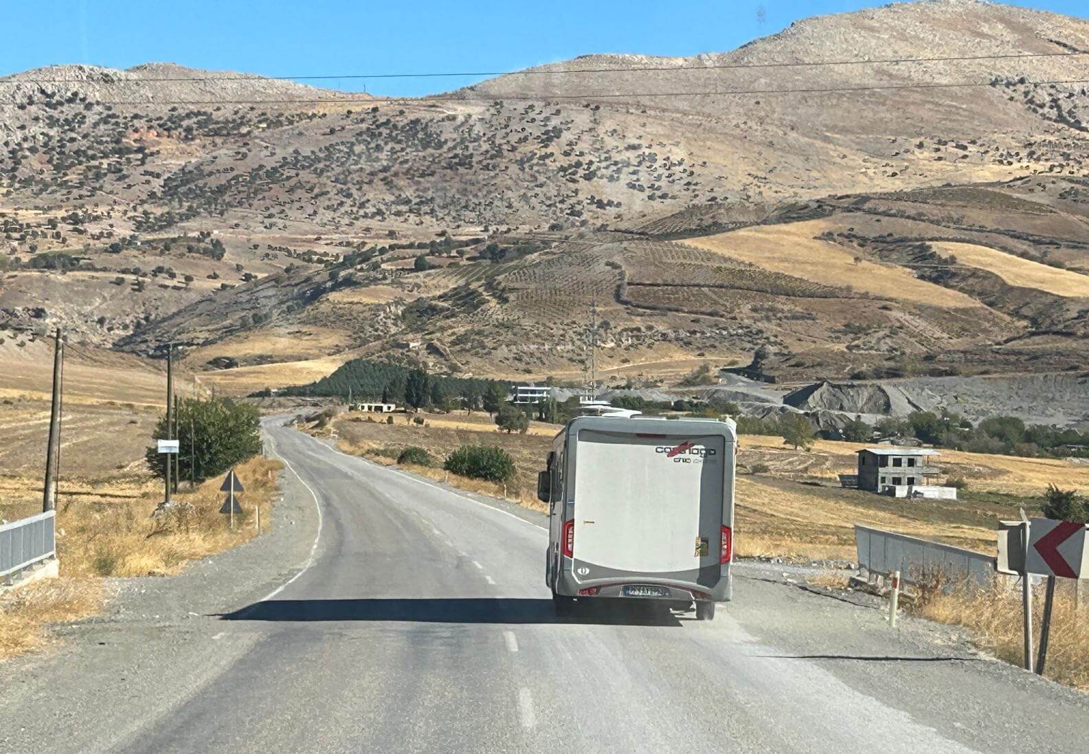 Unsere Tour führt uns heute weiter nach Südosten bis in die Nähe von Syrien. Das Tagesziel ist Midyat im Tur Abdin, einem Kalksteingebirge am Oberlauf des Tigris. Die Straßen sind wie immer in gutem Zustand. So geht die Fahrt problemlos vorbei an Diyarbakir, der heimlichen Hauptstadt Kurdistans, und an Batman, der Stadt des Erdöls. Wir kommen im Zweistromland des Euphrat und Tigris an und sehen an den vielen landwirtschaftlich genutzten Flächen von Wiesen, Äckern und Weinbergen, weshalb es immer wieder viele Völker in dieses fruchtbare Gebiet zog. Unser CP liegt vor den Toren von Midyat auf einem kleinen Hügel, ca. 50 km von der syrischen Grenze entfernt. Der „kleine“ Hügel und das Tor zur Einfahrt bereiten leider den größeren Fahrzeugen unserer Gruppe ein Problem. Für zwei ist das Tor zu niedrig und für drei die Steigung zu steil. Da wir jedoch einen Unimog dabei haben, wird einfach hochgeschleppt, was hervorragend funktioniert. So müssen nur drei auf dem Parkplatz vor dem CP stehen. Dank der rührigen Betreiber des CP gibt es jedoch auch dort Frischwasser und Strom. Wir treffen uns am Nachmittag zum Willkommensbier. Diesmal werden die 10 l schnell und restlos alle. Leider spürt man auf 1000 m Höhe deutlich die mittlerweile herbstlichen Temperaturen am Abend, die ein längeres Verweilen vor den Womos verhindern.
