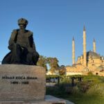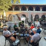 Heute führt uns der Fahrtag 1 in die Türkei. In Alexandroupolis gibt es u. a. auch einen Lidl, in dem letztmalig noch Wurst und anderes erworben werden kann, was es in der Türkei nicht mehr gibt. Dann sind wir nach 40 km an der EU-Grenze. Bei der Einreise in die Türkei lernten fast alle unserer Gruppe die Scann-Halle zum „Durchleuchten“ unserer Wohnmobile kennen. Da wir weder Drogen noch Waffen einführen wollten, gab es keine Probleme mit der Weiterfahrt. Nach ca. 180 km erreichen wir Edirne, eine quirlige Großstadt im bulgarisch-griechisch-türkischen Dreiländereck in Ostthrakien, dem europäischen Teil der Türkei. Unser Hauptziel ist die Selimiye-Moschee, Weltkulturerbe der UNESCO und in der Türkei wohl eine der schönsten Moscheen des „Stararchitekten“ der Sultane des osmanischen Reiches, Sinan. Bevor wir jedoch am nächsten Tag auf Entdeckung dahin gehen werden, erledigen wir erst mal die nötigen Mautformalitäten in einer Postfiliale der Ptt. Danach nutzen viele den späteren Nachmittag um die Fußgängerpassagen um die Moschee zum Bummeln und die Gastronomie zum Essen zu erkunden. Am Abend findet sich der Großteil der Gruppe zum Plaudern in der abendlichen Kühle zusammen.
