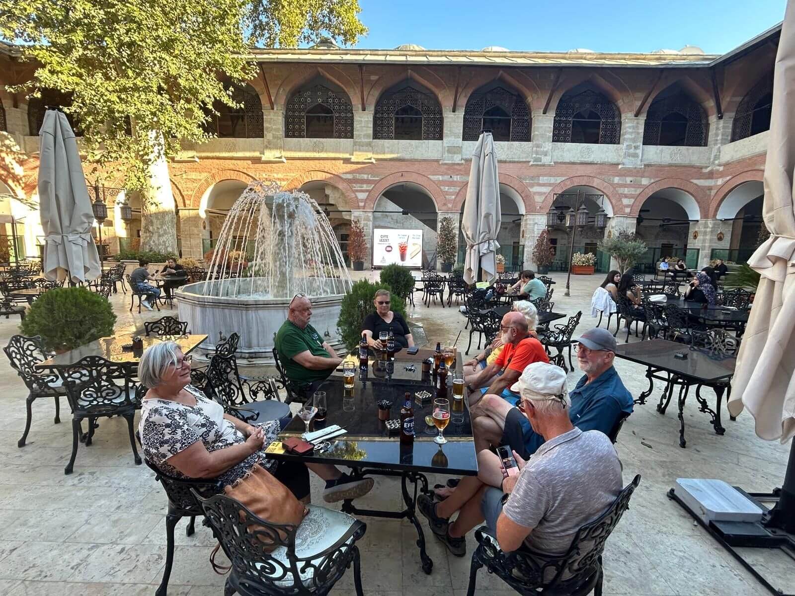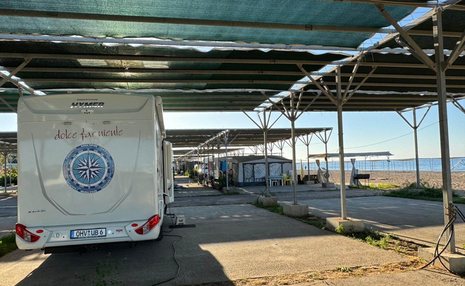 Heute führt uns der Fahrtag 1 in die Türkei. In Alexandroupolis gibt es u. a. auch einen Lidl, in dem letztmalig noch Wurst und anderes erworben werden kann, was es in der Türkei nicht mehr gibt. Dann sind wir nach 40 km an der EU-Grenze. Bei der Einreise in die Türkei lernten fast alle unserer Gruppe die Scann-Halle zum „Durchleuchten“ unserer Wohnmobile kennen. Da wir weder Drogen noch Waffen einführen wollten, gab es keine Probleme mit der Weiterfahrt. Nach ca. 180 km erreichen wir Edirne, eine quirlige Großstadt im bulgarisch-griechisch-türkischen Dreiländereck in Ostthrakien, dem europäischen Teil der Türkei. Unser Hauptziel ist die Selimiye-Moschee, Weltkulturerbe der UNESCO und in der Türkei wohl eine der schönsten Moscheen des „Stararchitekten“ der Sultane des osmanischen Reiches, Sinan. Bevor wir jedoch am nächsten Tag auf Entdeckung dahin gehen werden, erledigen wir erst mal die nötigen Mautformalitäten in einer Postfiliale der Ptt. Danach nutzen viele den späteren Nachmittag um die Fußgängerpassagen um die Moschee zum Bummeln und die Gastronomie zum Essen zu erkunden. Am Abend findet sich der Großteil der Gruppe zum Plaudern in der abendlichen Kühle zusammen.