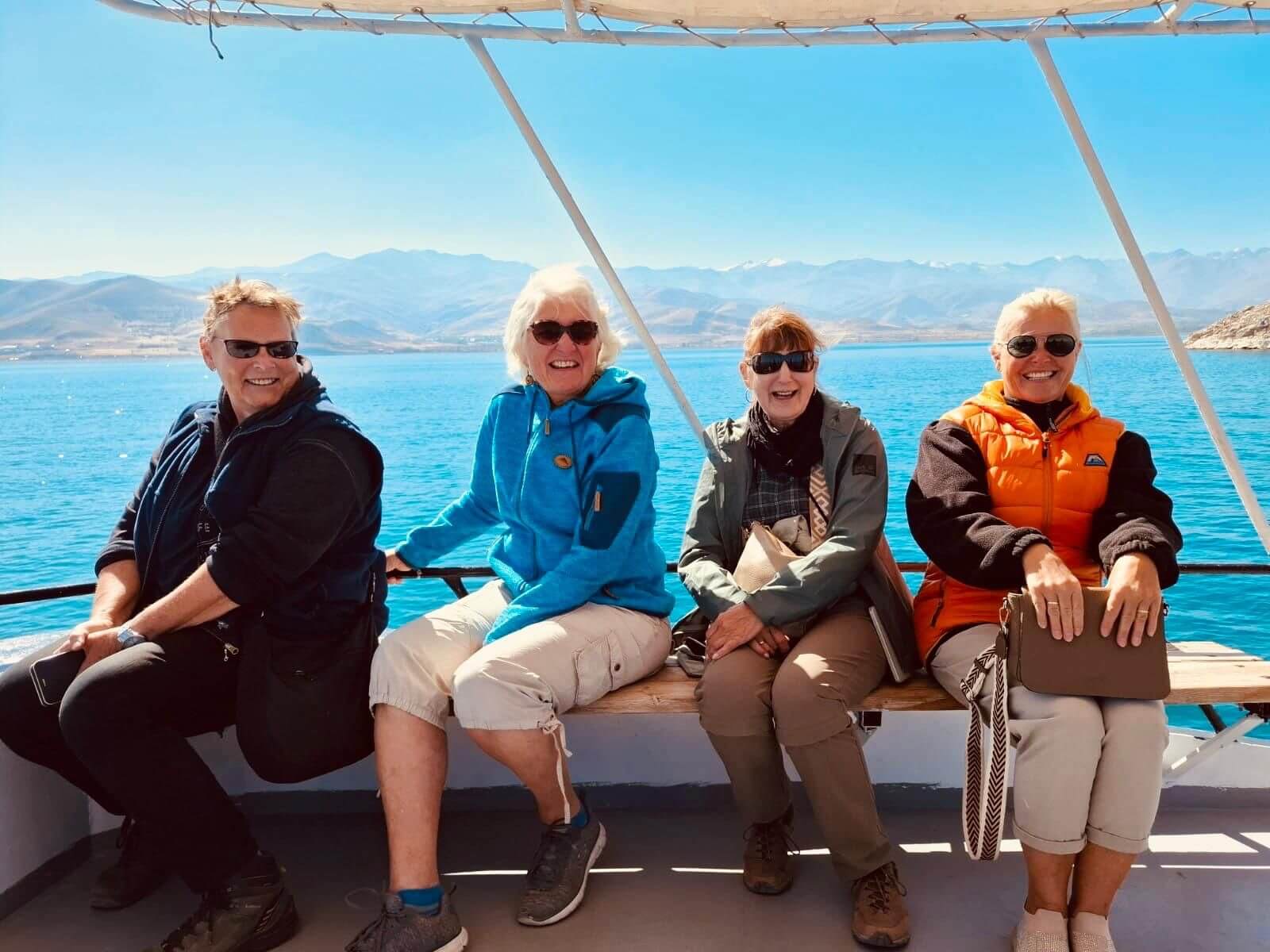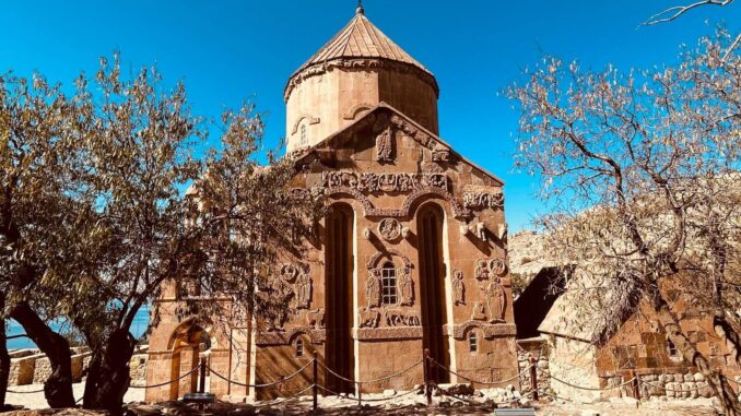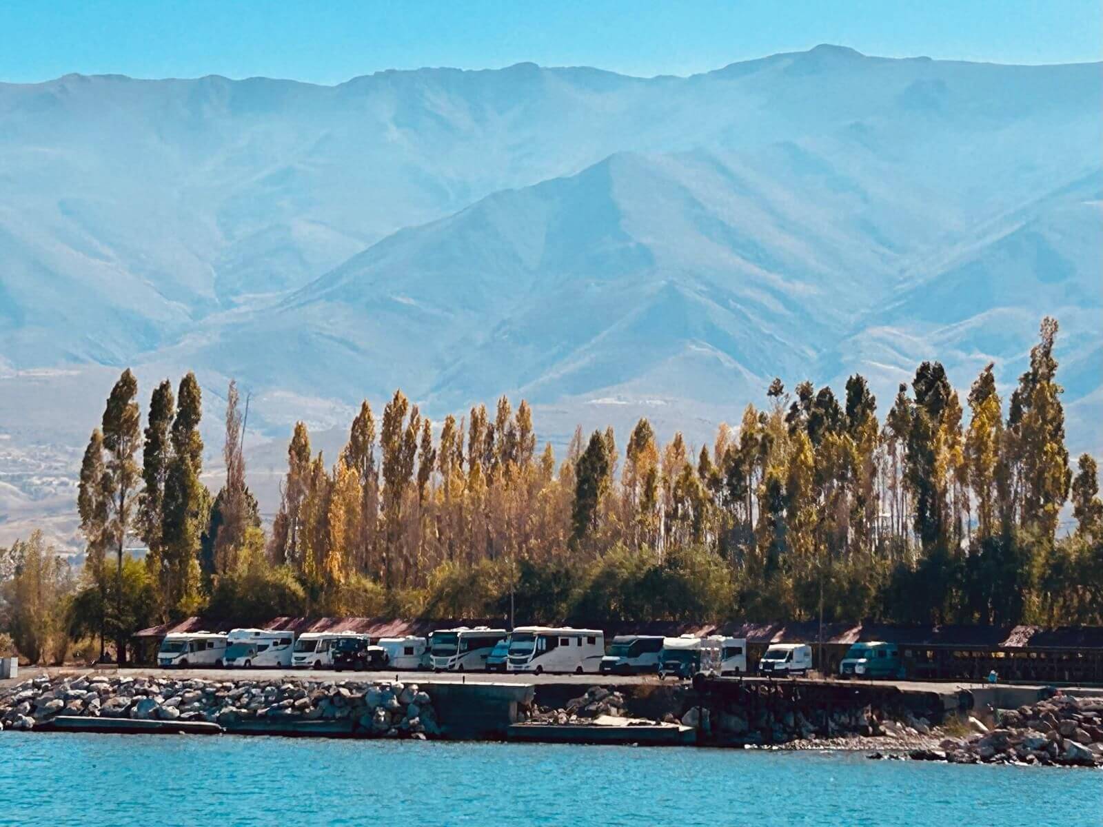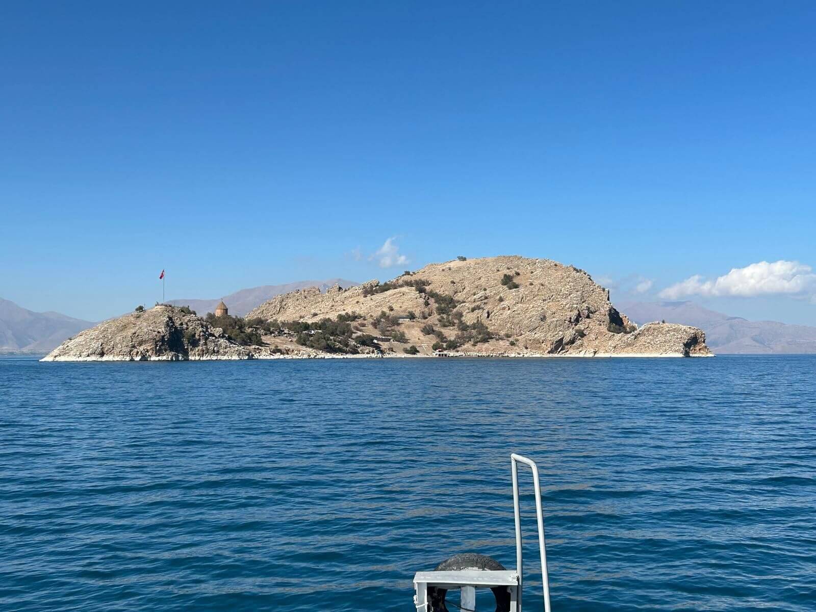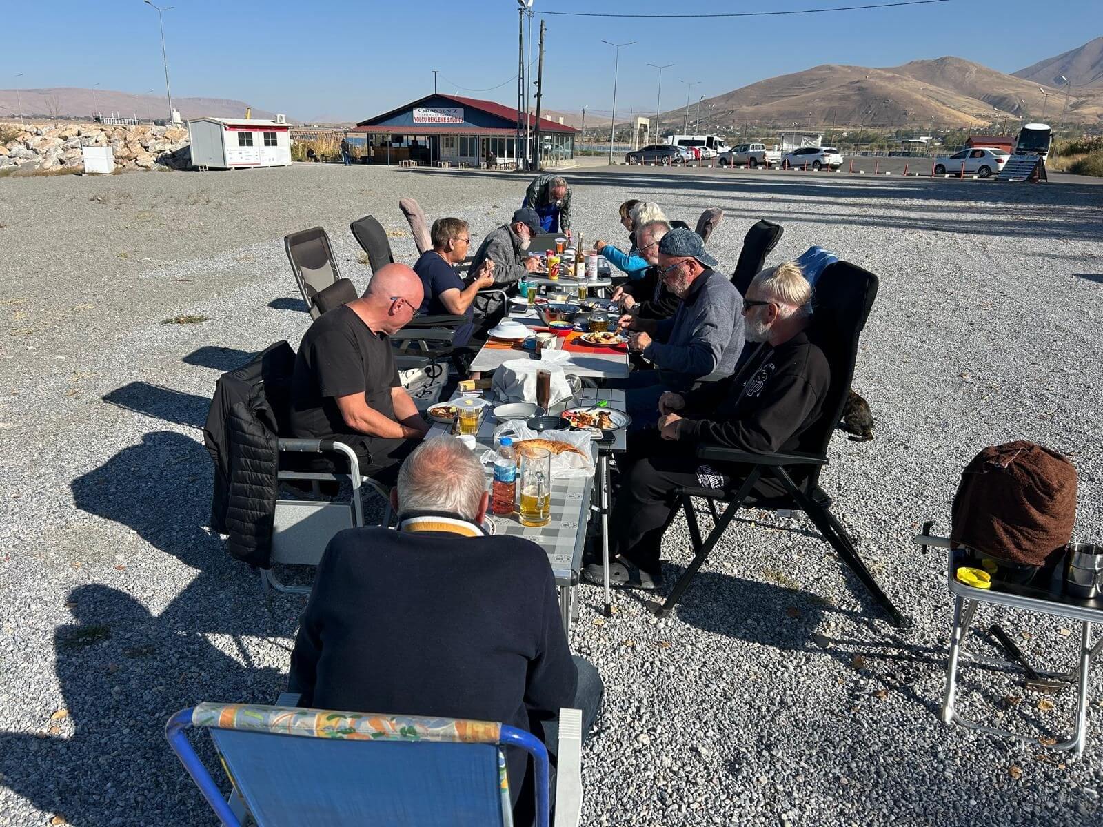 Wir können mal wieder etwas länger schlafen. Unsere Bootsfahrt zur Insel Akdamar beginnt um 10 Uhr. Nach einem ruhigen Frühstück bringt uns ein Boot bei strahlendem Sonnenschein zur Insel Akdamar. Die zweitgrößte Insel im Vansee war Jahrhunderte das kulturelle Zentrum der Armenier im Armenischen Hochland, auch der Sitz des Katolikus von Aghtamar der Armenischen Apostolischen Kirche. Berühmt ist die Insel vor allem wegen ihrer armenischen Kirche, der „Kirche zum Heiligen Kreuz“ aus dem 10. Jhd. Nach der Besichtigung der Kirche bringt uns das Boot zurück zum Hafen, der unmittelbar neben unserem Campingplatz liegt. Der Nachmittag steht für die individuelle Freizeit zur Verfügung. Dazu gehört auch, mal wieder, die Frontscheiben von den vielen Insektenresten zu befreien. Obwohl kein insgesamtes Interesse an einer Campertafel zustande kam, findet sich am Nachmittag der größere Teil der Gruppe zum „gemeinsamen Tafeln“ zusammen. Danach wird die Sonne genutzt, um am Ufer des Vansees noch zu klönen. Am späteren Nachmittag treffen wir uns zur Besprechung des nächsten Fahrtages und dann vertreibt die Abendkälte alle bis auf einen harten Kern in die Wohnmobile.