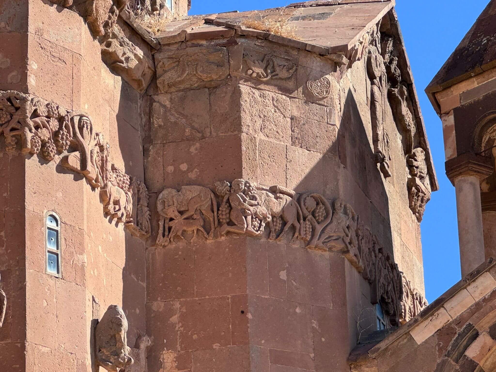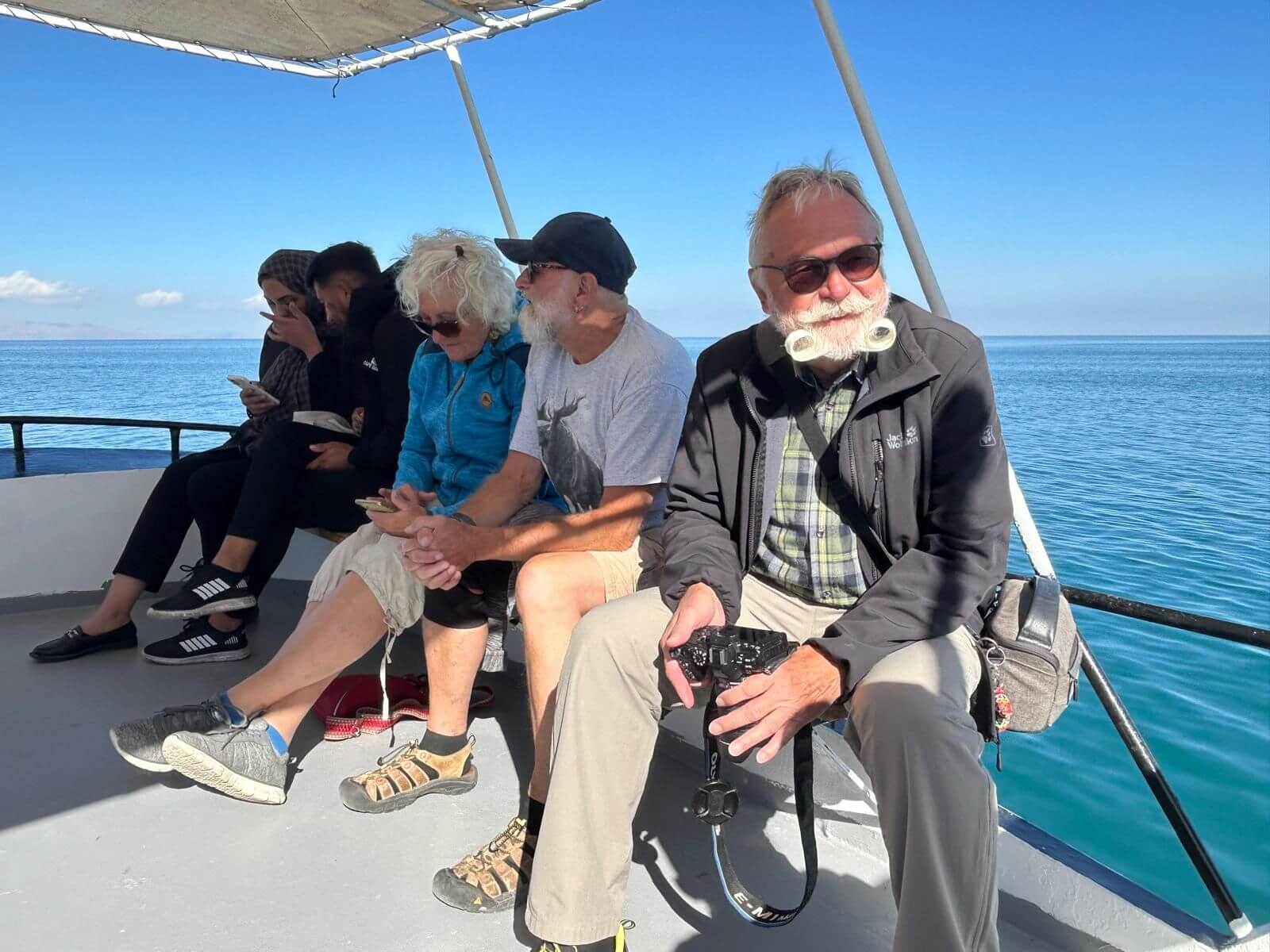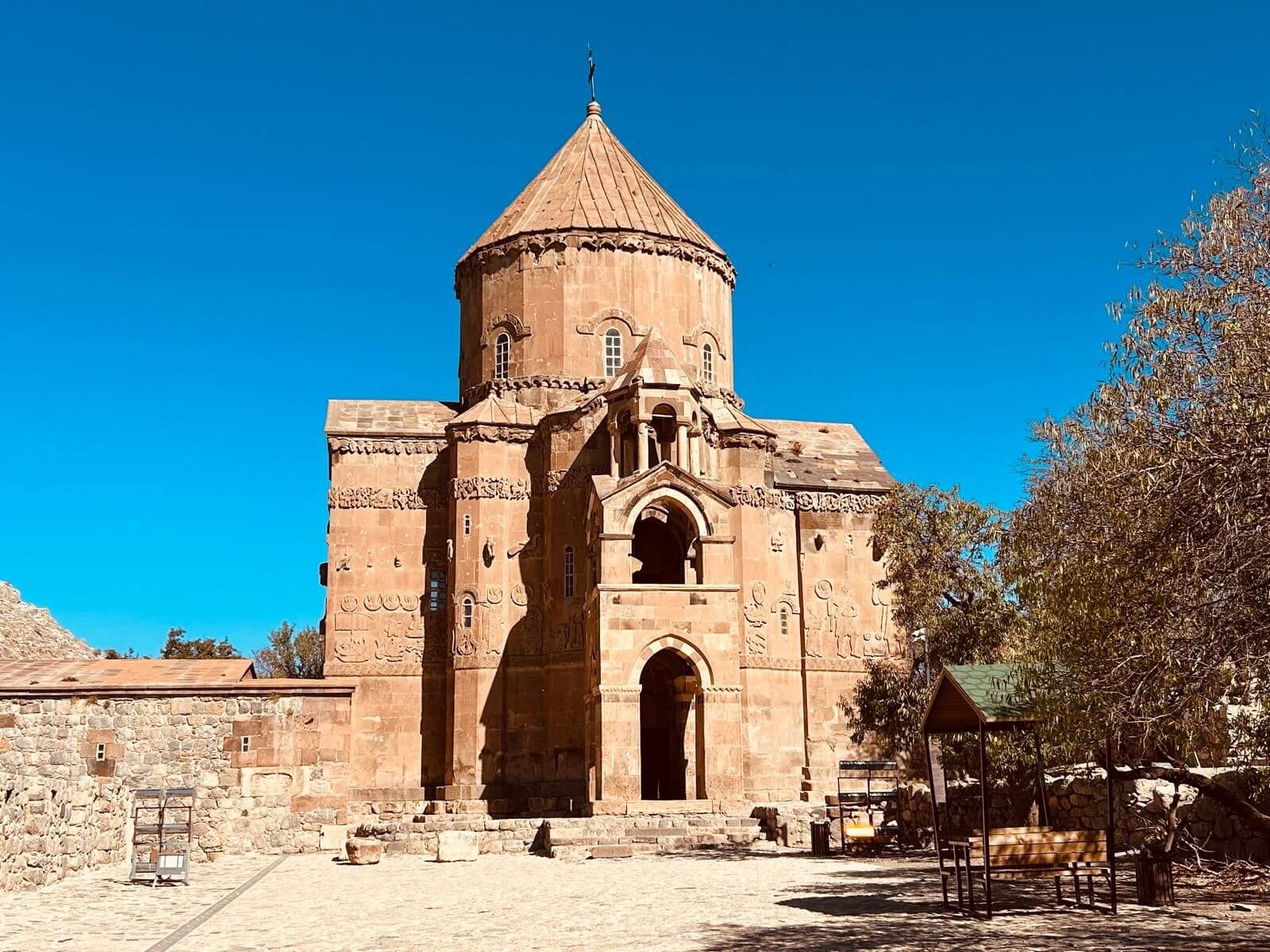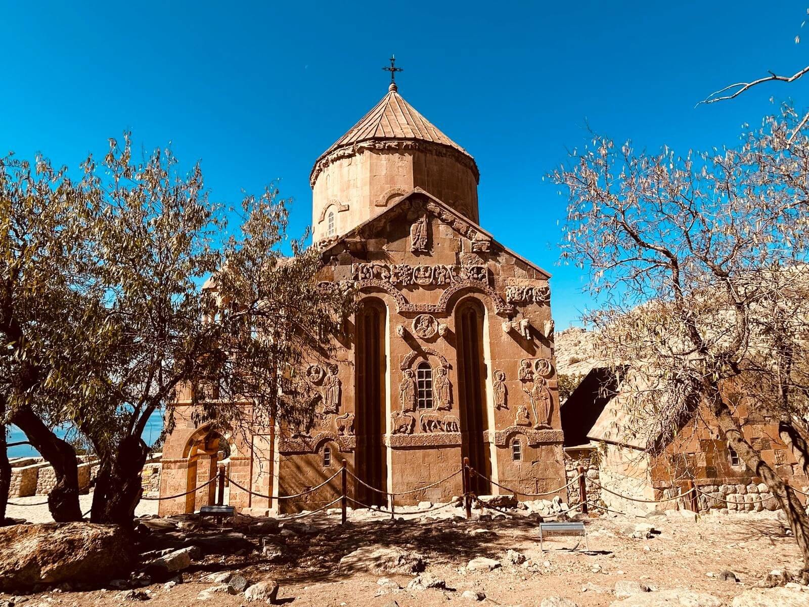 Wir können mal wieder etwas länger schlafen. Unsere Bootsfahrt zur Insel Akdamar beginnt um 10 Uhr. Nach einem ruhigen Frühstück bringt uns ein Boot bei strahlendem Sonnenschein zur Insel Akdamar. Die zweitgrößte Insel im Vansee war Jahrhunderte das kulturelle Zentrum der Armenier im Armenischen Hochland, auch der Sitz des Katolikus von Aghtamar der Armenischen Apostolischen Kirche. Berühmt ist die Insel vor allem wegen ihrer armenischen Kirche, der „Kirche zum Heiligen Kreuz“ aus dem 10. Jhd. Nach der Besichtigung der Kirche bringt uns das Boot zurück zum Hafen, der unmittelbar neben unserem Campingplatz liegt. Der Nachmittag steht für die individuelle Freizeit zur Verfügung. Dazu gehört auch, mal wieder, die Frontscheiben von den vielen Insektenresten zu befreien. Obwohl kein insgesamtes Interesse an einer Campertafel zustande kam, findet sich am Nachmittag der größere Teil der Gruppe zum „gemeinsamen Tafeln“ zusammen. Danach wird die Sonne genutzt, um am Ufer des Vansees noch zu klönen. Am späteren Nachmittag treffen wir uns zur Besprechung des nächsten Fahrtages und dann vertreibt die Abendkälte alle bis auf einen harten Kern in die Wohnmobile.