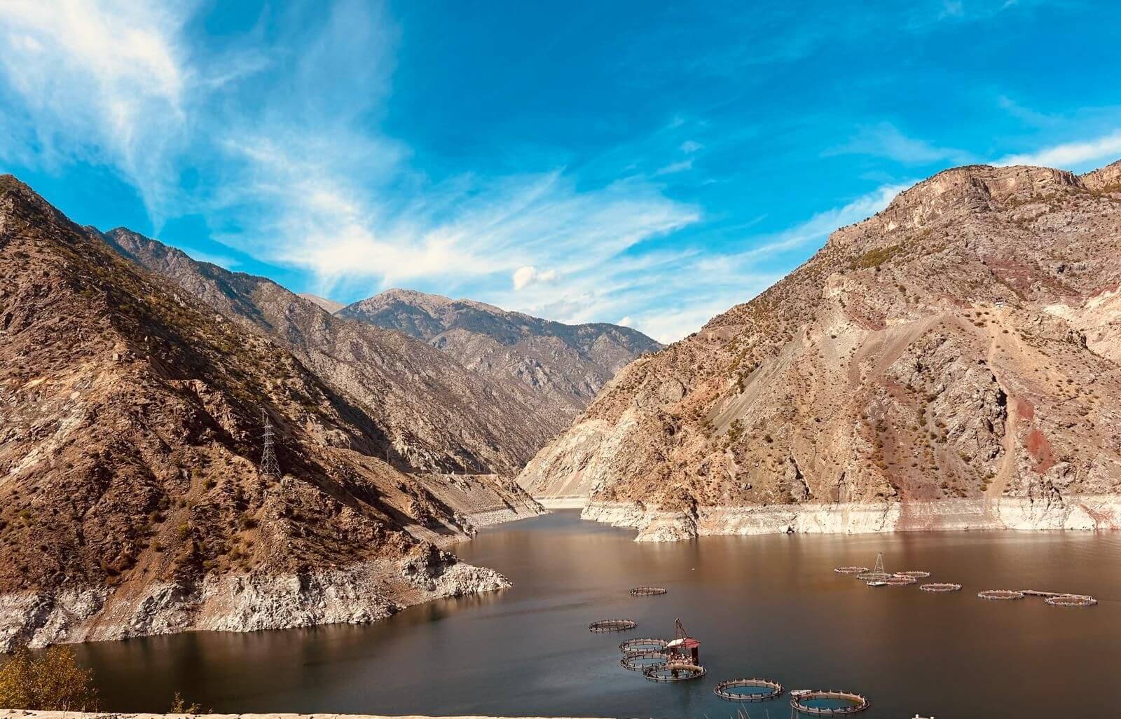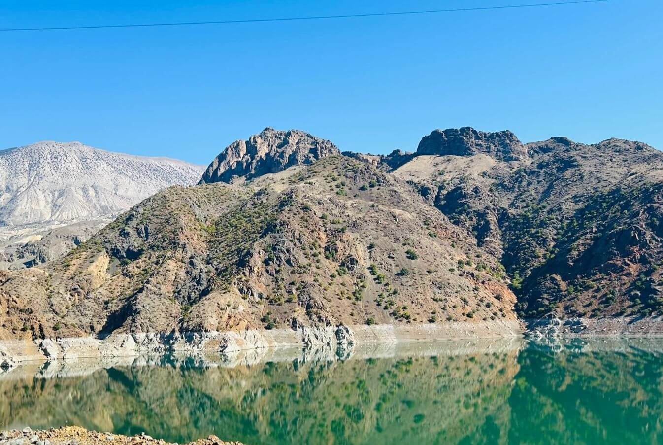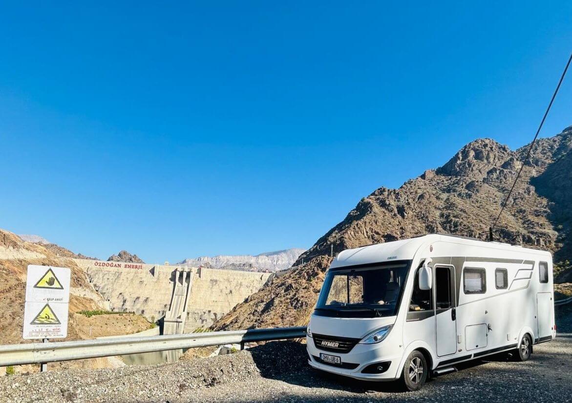 Heute haben wir die Wahl zwischen zwei Routen. Eine über die Berge, vorbei an Staudämmen und traumhaften Landschaften, aber mit fahrerischen Ansprüchen wegen vieler Serpentinen und endloser Tunnel. Die andere Route auf den gewohnten vierspurigen Schnellstraßen über Erzurum, jedoch auch vorbei an reizvollen Landschaften und ebenfalls durch längere Tunnel. Die Mehrheit der Teilnehmer entscheidet sich für Route 1. Diese beginnt bei Sonnenschein auf zweispurigen Straßen in Höhen über 2000 m, umgeben von schneebedeckten 3.000dern. Wir erreichen den Stausee des Ayvali Staudamms und stellen an den Rändern des üblichen Wasserstandes fest, dass das Becken höchstens zur Hälfte gefüllt ist. Auch hier wird deutlich, dass die Türkei ein trockenes Frühjahr und einen trockenen Sommer hinter sich hat. Trotzdem gibt es noch viele Fischzuchtanlagen auf dem See. Danach können wir in mehreren endlos erscheinenden Tunneln die türkische Straßenbaukunst bewundern. Auch die weiteren Stauseen zeigen einen deutlichen Niedrigstand des Wasserpegels. Nachdem wir das armenische Bergland endgültig verlassen haben, geht es nach Norden an das Schwarze Meer. Weitere Tunnel folgen mit interessanter Innenbeleuchtung. Wir erreichen die D-010, die mit über 1.400 km bis nach Istanbul längste Küstenstraße der Türkei. Nach einer kurzen Strecke wieder landeinwärts sind wir dann endlich an unserem CP in Sumela. Dort treffen wir auf den Rest der Gruppe, die ebenfalls von ihrer Strecke begeistert war. Unser Ovit-Tunnel mit 14.346 m Länge konnte jedoch nicht überzeugen. Sie sind durch den Yeni-Zigana-Tunnel, mit 14.467 m längster Tunnel der Türkei, nach Sumela gekommen.