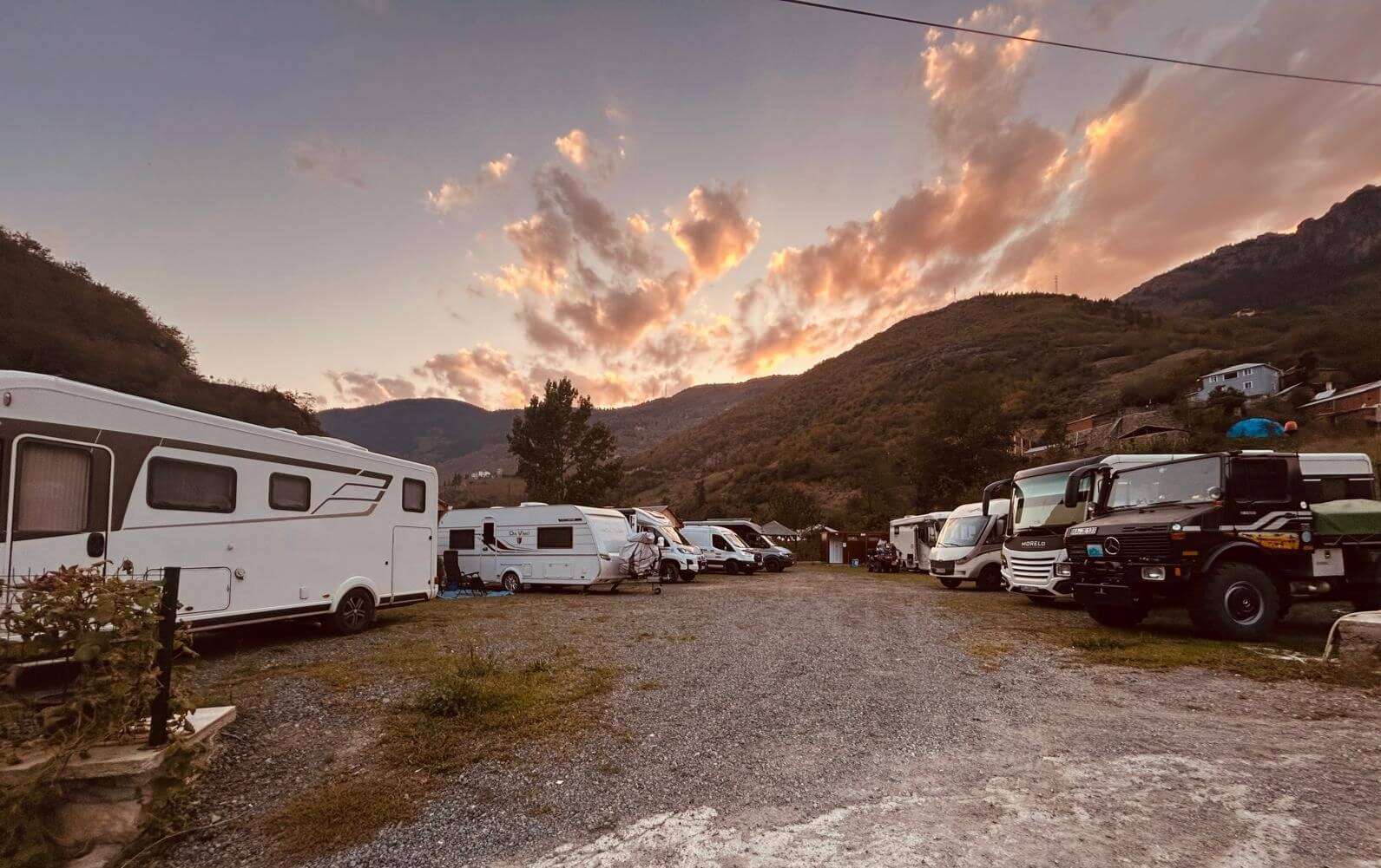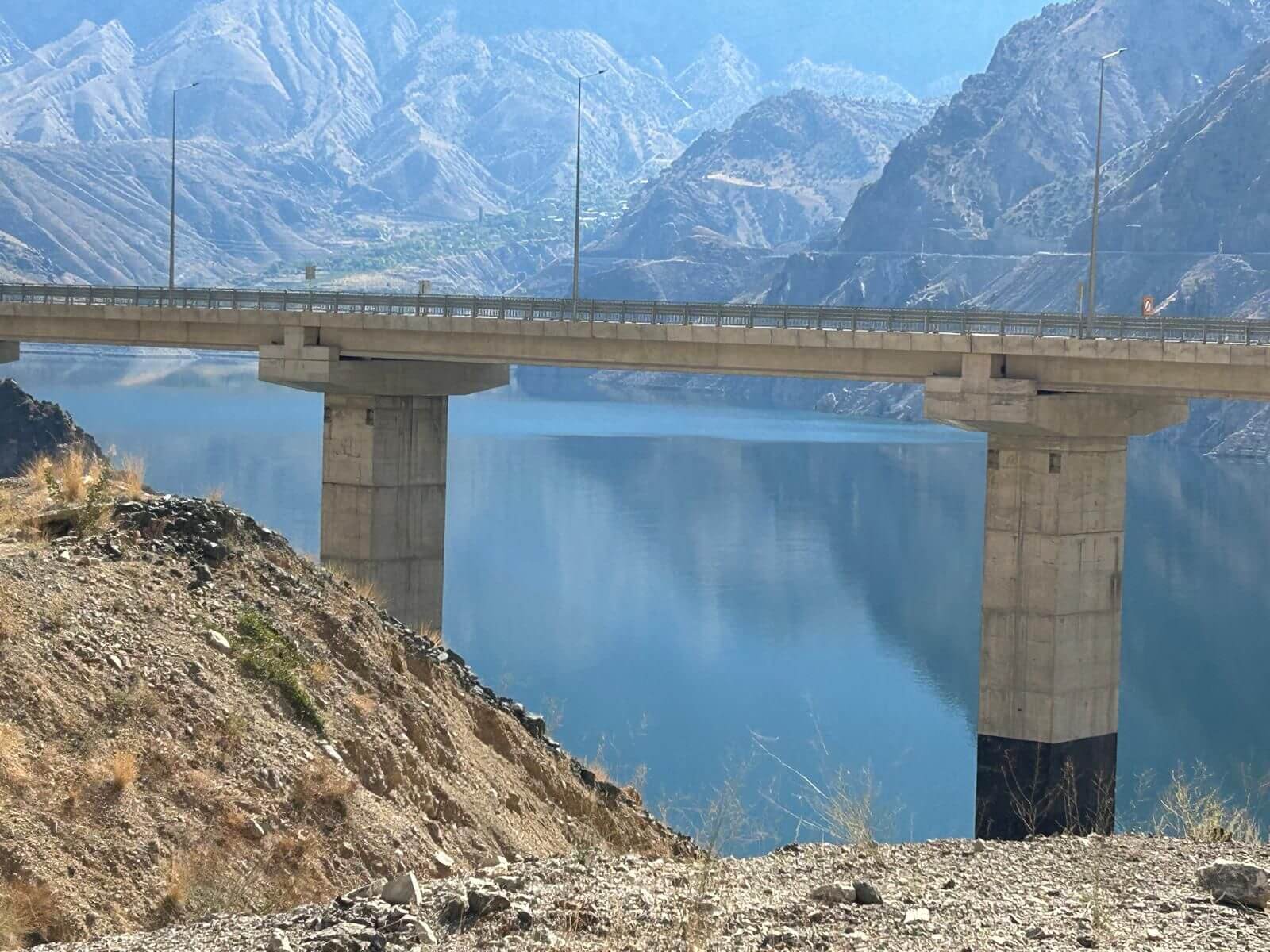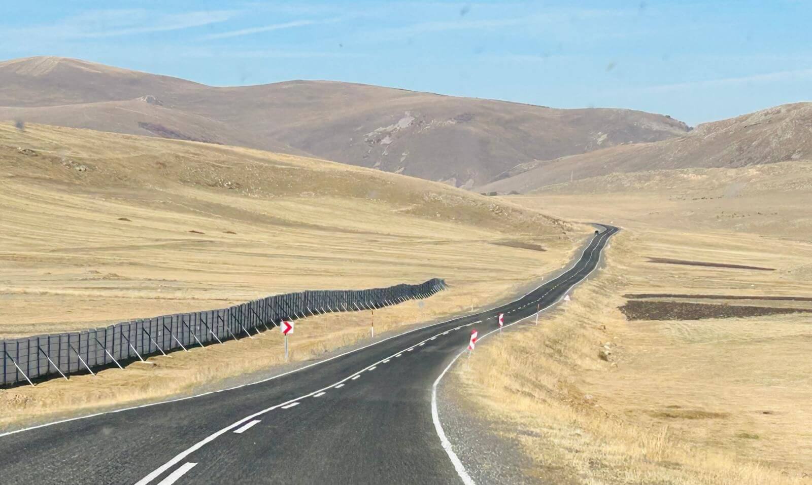 Heute haben wir die Wahl zwischen zwei Routen. Eine über die Berge, vorbei an Staudämmen und traumhaften Landschaften, aber mit fahrerischen Ansprüchen wegen vieler Serpentinen und endloser Tunnel. Die andere Route auf den gewohnten vierspurigen Schnellstraßen über Erzurum, jedoch auch vorbei an reizvollen Landschaften und ebenfalls durch längere Tunnel. Die Mehrheit der Teilnehmer entscheidet sich für Route 1. Diese beginnt bei Sonnenschein auf zweispurigen Straßen in Höhen über 2000 m, umgeben von schneebedeckten 3.000dern. Wir erreichen den Stausee des Ayvali Staudamms und stellen an den Rändern des üblichen Wasserstandes fest, dass das Becken höchstens zur Hälfte gefüllt ist. Auch hier wird deutlich, dass die Türkei ein trockenes Frühjahr und einen trockenen Sommer hinter sich hat. Trotzdem gibt es noch viele Fischzuchtanlagen auf dem See. Danach können wir in mehreren endlos erscheinenden Tunneln die türkische Straßenbaukunst bewundern. Auch die weiteren Stauseen zeigen einen deutlichen Niedrigstand des Wasserpegels. Nachdem wir das armenische Bergland endgültig verlassen haben, geht es nach Norden an das Schwarze Meer. Weitere Tunnel folgen mit interessanter Innenbeleuchtung. Wir erreichen die D-010, die mit über 1.400 km bis nach Istanbul längste Küstenstraße der Türkei. Nach einer kurzen Strecke wieder landeinwärts sind wir dann endlich an unserem CP in Sumela. Dort treffen wir auf den Rest der Gruppe, die ebenfalls von ihrer Strecke begeistert war. Unser Ovit-Tunnel mit 14.346 m Länge konnte jedoch nicht überzeugen. Sie sind durch den Yeni-Zigana-Tunnel, mit 14.467 m längster Tunnel der Türkei, nach Sumela gekommen.
