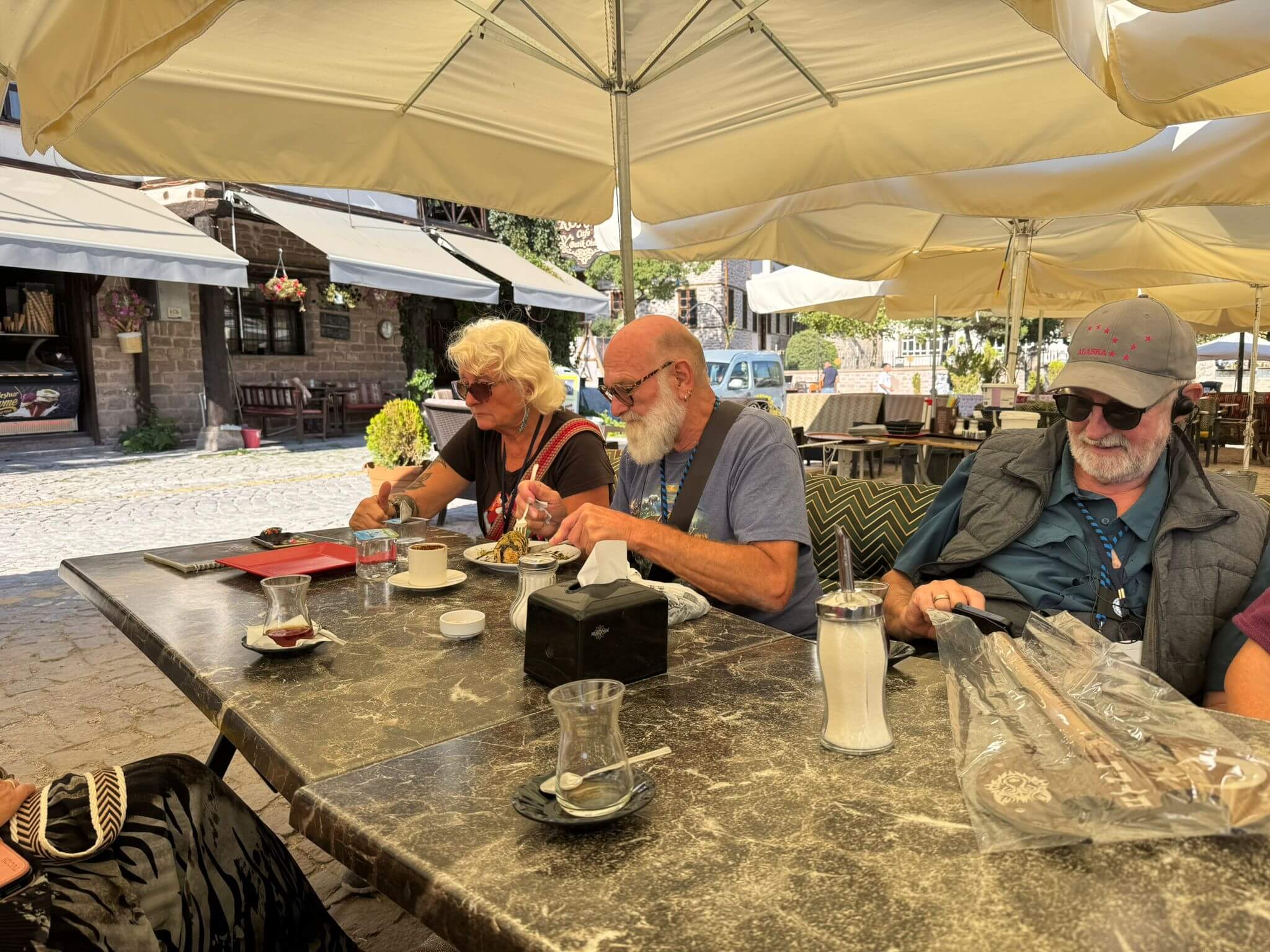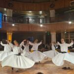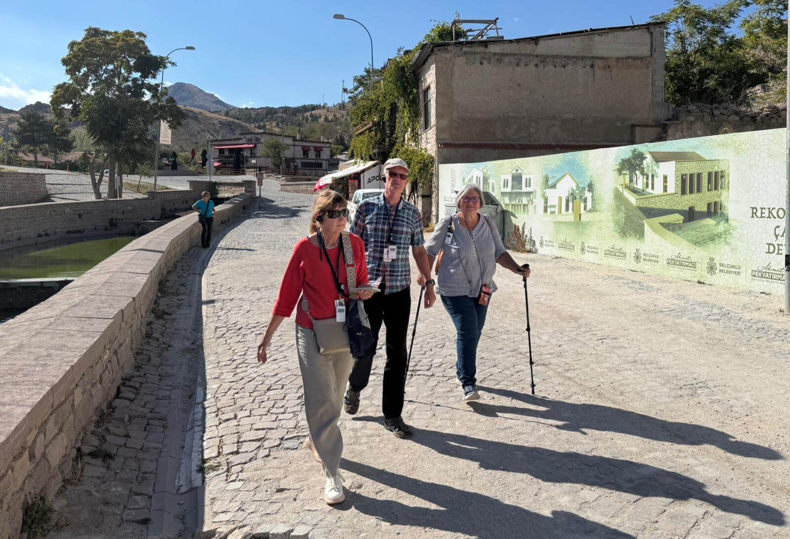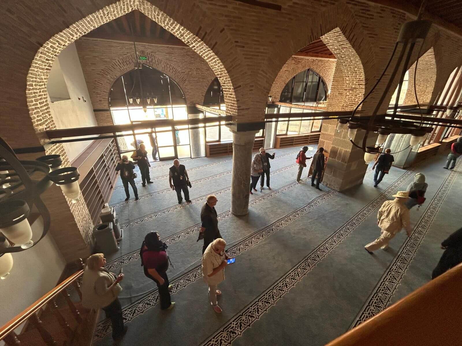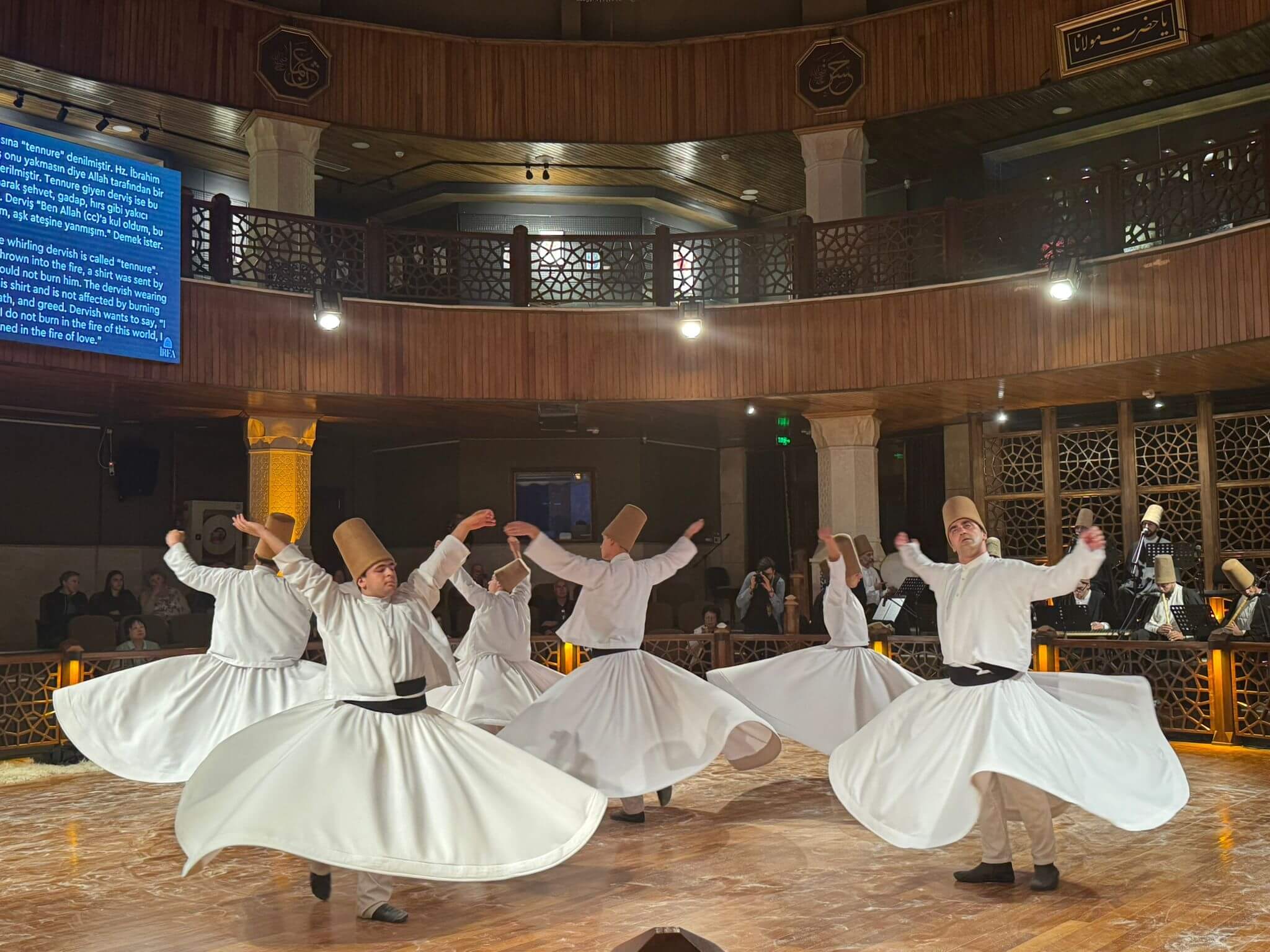 Der gestrige Ruhetag hat allen gutgetan. So starten wir am Morgen mit Sonnenschein am Himmel und im Herzen mit einem Bus, um Konya, die Stadt der Mevlevi-Tariqa, kennenzulernen. Unser erstes Ziel ist das Mausoleum des Gründers des Ordens, Dschalal ad-Din ar-Rumi, welches seit 1927 mit der Säkularisierung durch Atatürk zum Mevlana-Museum wurde. In dem Museum erfahren wir von unserem Guide und anhand der Ausstellung viel über diesen Orden des Islam, der in der ganzen Welt verbreitet ist. Nach einer kurzen Teepause auf dem Alaaddin-Hügel, einer aufgeschütteten Erhebung inmitten Konyas, um die Bauten der Sultane der Rum-Seldschuken-Dynastien aus der Umgebung hervorzuheben, besichtigen wir dort den letzten erhaltenen Rest der Mauern des alten Palastes und das größte noch erhaltene Bauwerk, die Alaaddin-Moschee, die zu Zeiten des mächtigen Seldschuken-Sultans Alaaddin Keykubat (regierte 1219 bis 1236 n. Chr.) fertiggestellt wurde. Bestaunt wird die prächtige Mihrab, die Gebetsnische in Richtung Mekka, die aus wundervoll gefertigten, türkisfarbenen Kacheln aus seldschukischer Zeit besteht. Dann bekommt wieder mal der Hunger die Oberhand und wir besuchen ein traditionelles Restaurant, in dem jeder sein Wunschgericht findet. Renner ist das im Ofen gebackene Lammfleisch. Nach dem Essen bringt uns der Bus zum Sille Subasi. Sille war eines der wenigen Dörfer, in denen bis 1922 kappadokisch-griechisch gesprochen wurde. Es war von Griechen bewohnt, die dort seit über 800 Jahren in friedlichem Zusammenleben mit den nahe gelegenen Türken von Konya lebten. Das währte über acht Jahrhunderte, weshalb es den Dorfbewohnern gelang, sowohl ihre griechische Muttersprache als auch ihre orthodoxe christliche Religion zu bewahren. Etwas, was in der heutigen Zeit leider immer seltener wird. Wir wandern durch das Dorf und nutzen eines der vielen Restaurants für eine Tee- oder Kaffeepause. Der Bus bringt uns anschließend zurück zum CP und wir haben Glück, dass wir in Konya noch nicht in der Rush-Hour landen. So haben alle Zeit, etwas zu relaxen und sich auf den absoluten Höhepunkt des Tages vorzubereiten. Wir besuchen eine Sufi-Zeremonie der Derwische. Die Eindrücke von dieser Zeremonie sind unbeschreiblich. Bei der Heimfahrt sind sich alle einig, dass dieser Tag ein weiterer unvergesslicher Bestandteil der Reise sein wird.