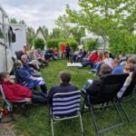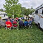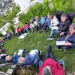 Nach solch einem Mittagessen benötigen wir etwas Bewegung. Deshalb unternehmen wir noch einen Spaziergang, schauen uns eine Fontäne auf der Prachtstraße genauer an, bevor wir wieder in den Bus steigen und zu unserem Campingplatz fahren. Wir verabschieden uns unterwegs von Mariana, verschnaufen ein wenig, bevor wir uns zu unserer abendlichen Runde zusammenfinden. Die Sonne ist zu sehen, es ist etwas wärmer und die gespendeten Weine schmecken. Besser geht’s nicht.