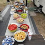 Nachdem wir gestern alle früh aufstehen mussten, genießen wir es heute, einmal richtig ausschlafen zu können. Die Sonne scheint und wir sehen einem schönen Tag entgegen. Den freien Tag nutzt heute jeder nach Gutdünken – Wohnmobil reinigen, Einkäufe erledigen oder einfach nur entspannen. Da wir für heute unsere Campertafel geplant haben, sind auch hierfür viele Erledigungen notwendig. Am Nachmittag haben wir noch unsere Besprechung der nächsten Tage. Dann heißt es, letzte Vorbereitungen für die Campertafel zu treffen. Gegen 17:30 Uhr sitzen wir dann alle gemütlich zusammen und bedienen uns an einem reichhaltigen Buffet, zu dem jeder beigetragen hat. Gleichzeitig feiern wir Miekes Geburtstag. So verbringen wir einen schönen gemeinsamen Abend am Schwarzen Meer.